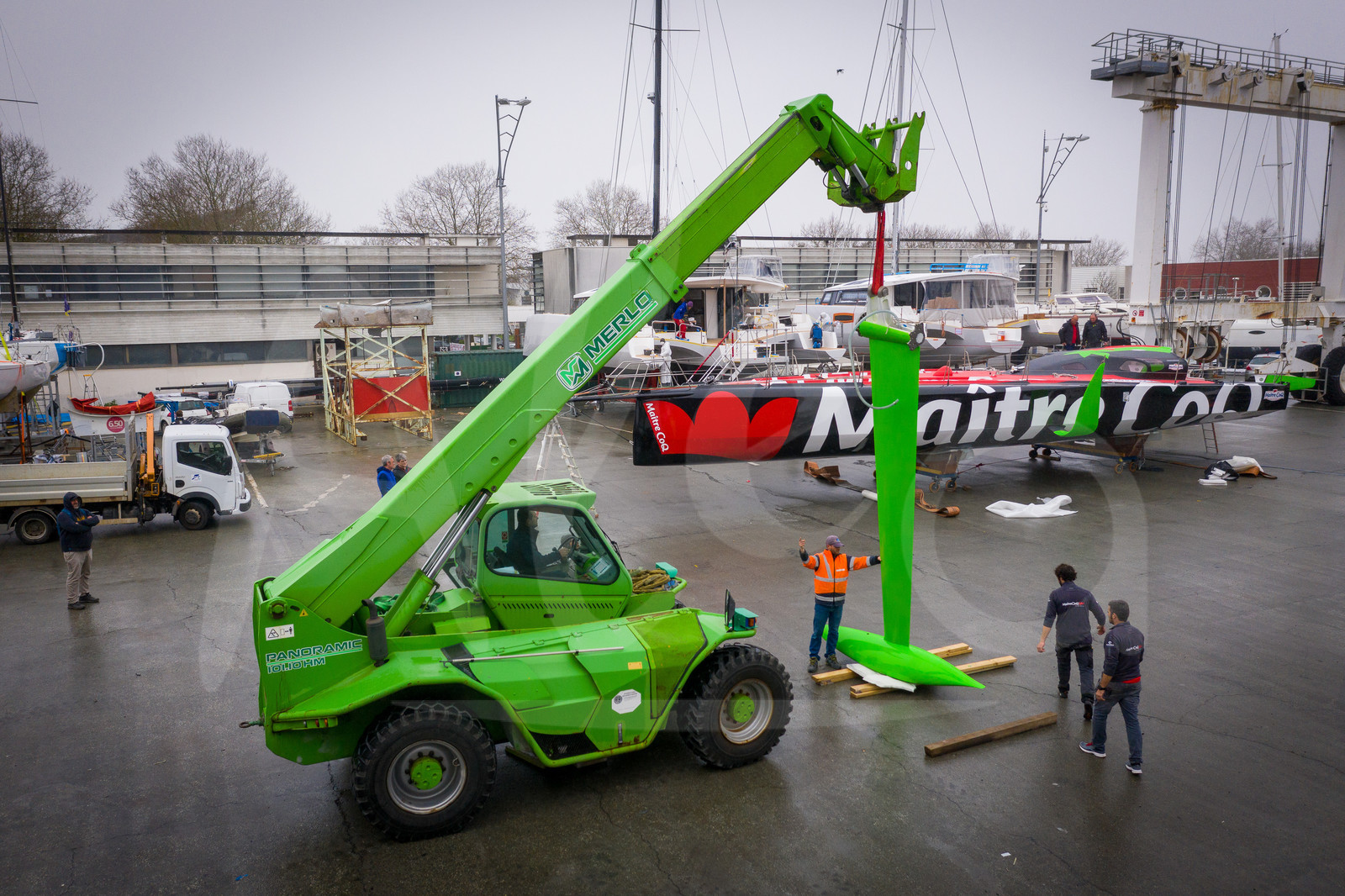 | Description | LA ROCHELLE, FRANCE - MARCH 11: Imoca boat Maitre Coq is illustrated in the shipyard before her launching, on March 11, 2020, in La Rochelle, France. (Photo by Jean-Marie Liot/Alea) |