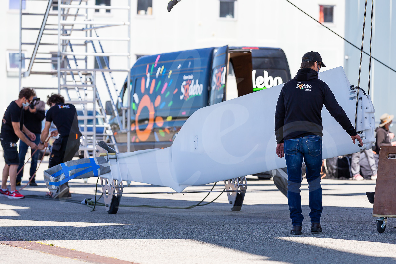 | Description | LORIENT, FRANCE - MAY 18: French skipper Thomas Coville is watching the multihull Sodebo Ultim 3 launched back to water on May 18, 2020, in Lorient, France. (Photo by Jean-Marie Liot/Alea) |
