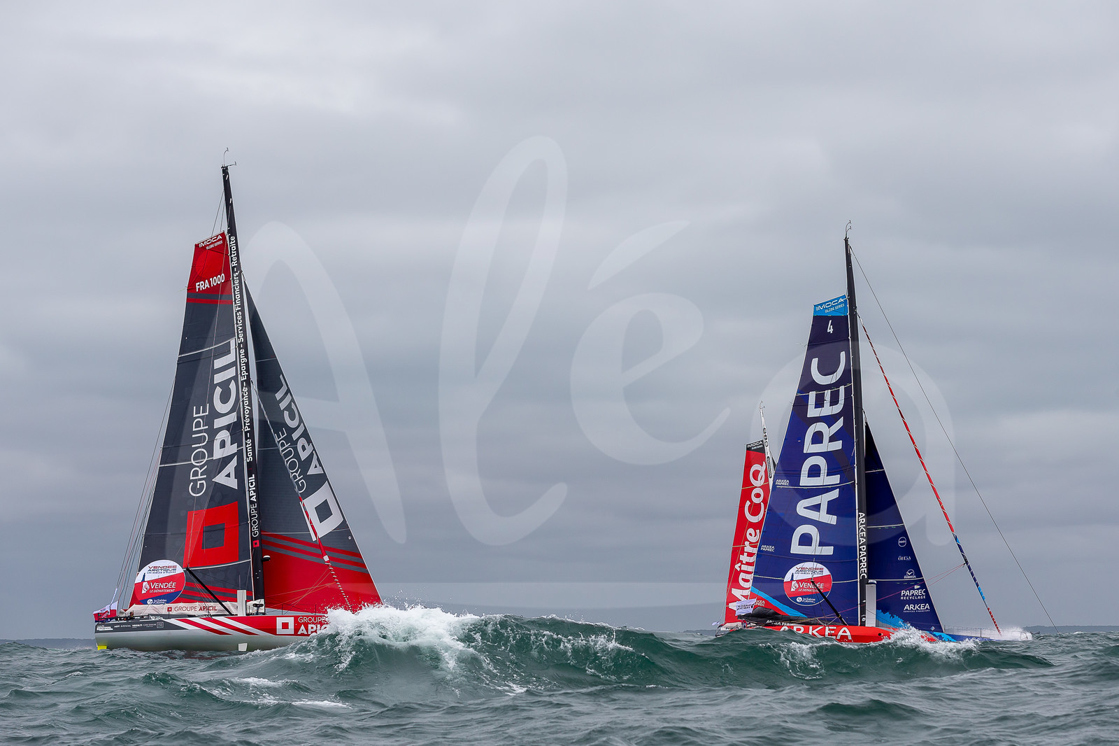 | Description | LES SABLES D'OLONNE, FRANCE - JULY 4: Groupe APICIL, skipper Damien Seguin (FRA) and Arkea Paprec, skipper Sebastien Simon (FRA) are taking the start of the Vendee Arctique solo sailing race, off Les Sables d'Olonne, France, on July 4, 2020. (Photo by Jean-Marie Liot/Alea) |