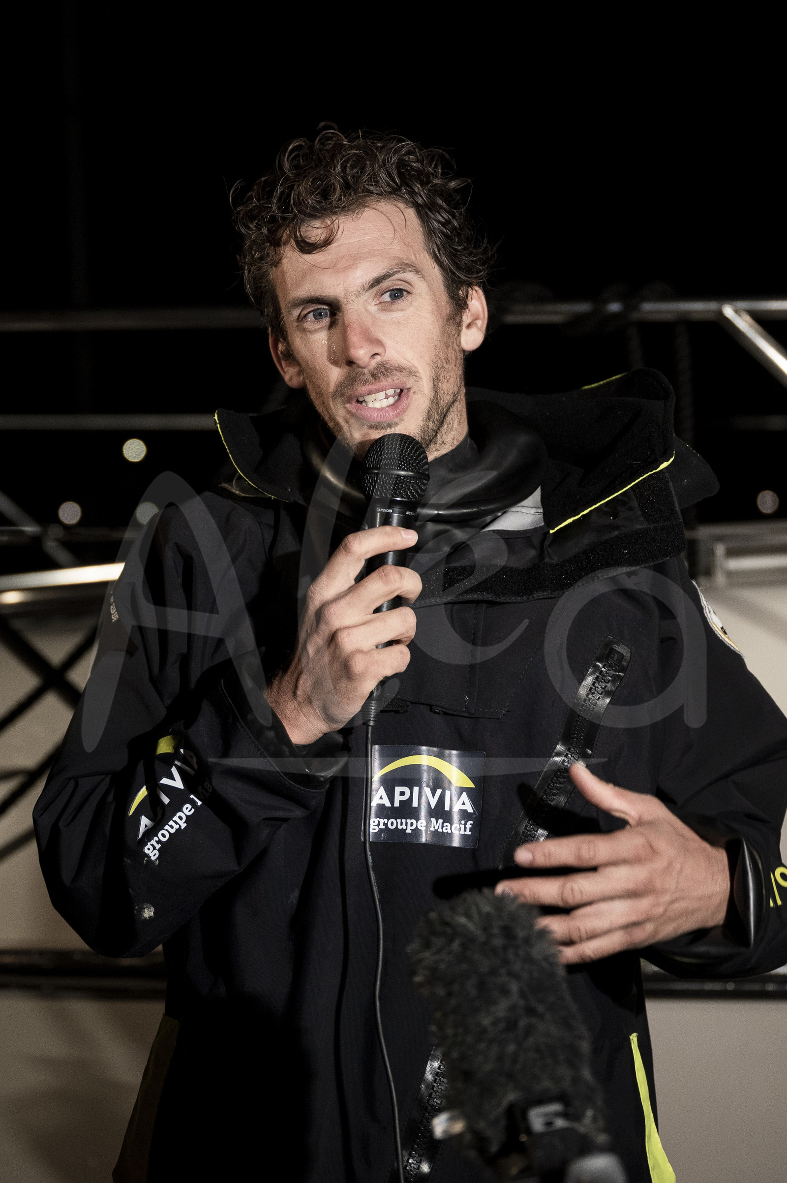| Description | LES SABLES D'OLONNE, FRANCE - JULY 14: Imoca Apivia, skipper Charlie Dalin (FRA), speaks to the media after taking 2nd place of the Vendee Arctique solo sailing race, off Les Sables d'Olonne, France, on July 14, 2020. (Photo by Olivier Blanchet / Alea) |