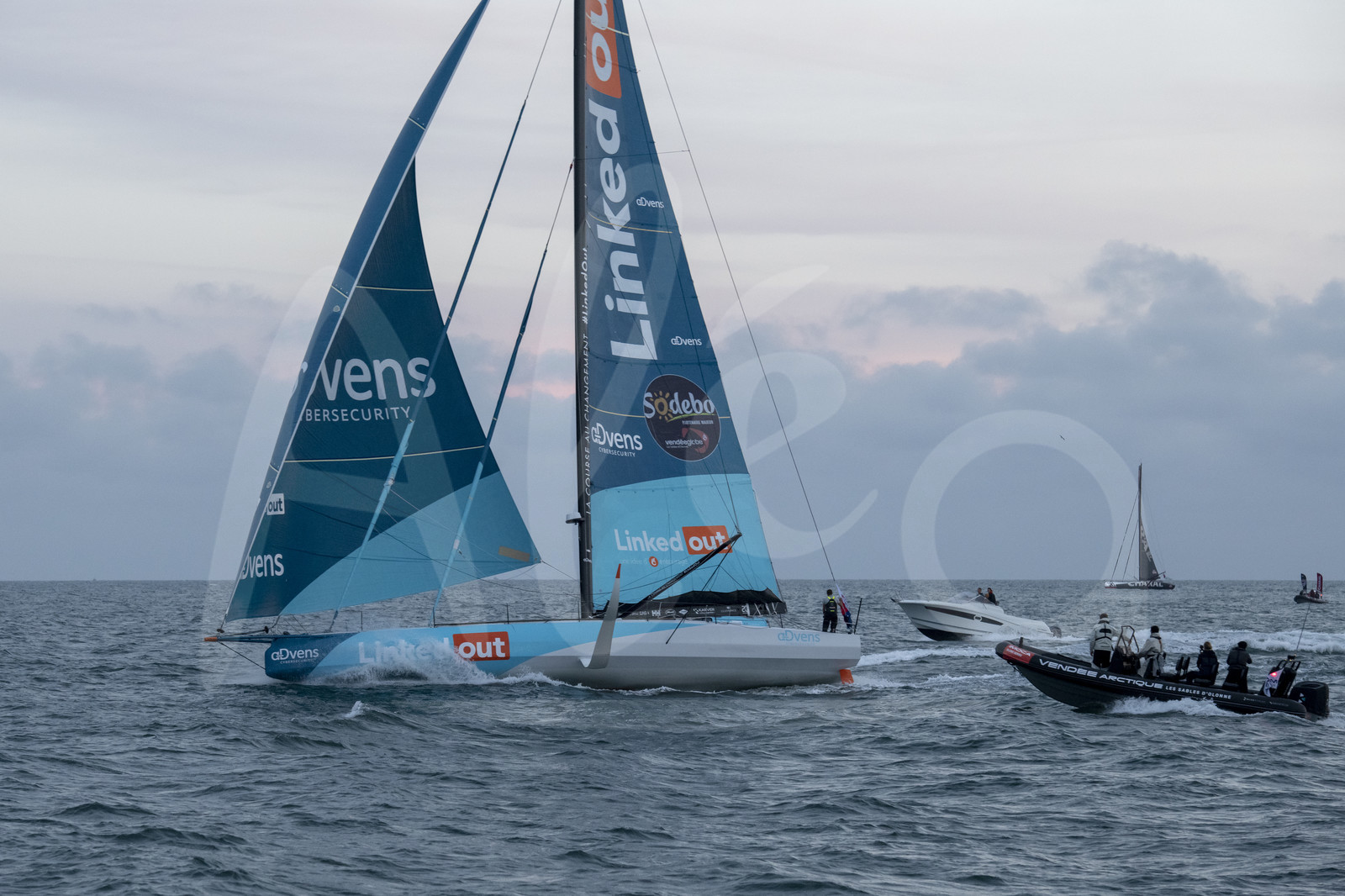 | Description | LES SABLES D'OLONNE, FRANCE - JULY 14: Imoca LinkedOut, skipper Thomas Ruyant (FRA), takes 3rd place of the Vendee Arctique solo sailing race, off Les Sables d'Olonne, France, on July 14, 2020. (Photo by Olivier Blanchet/Alea) |