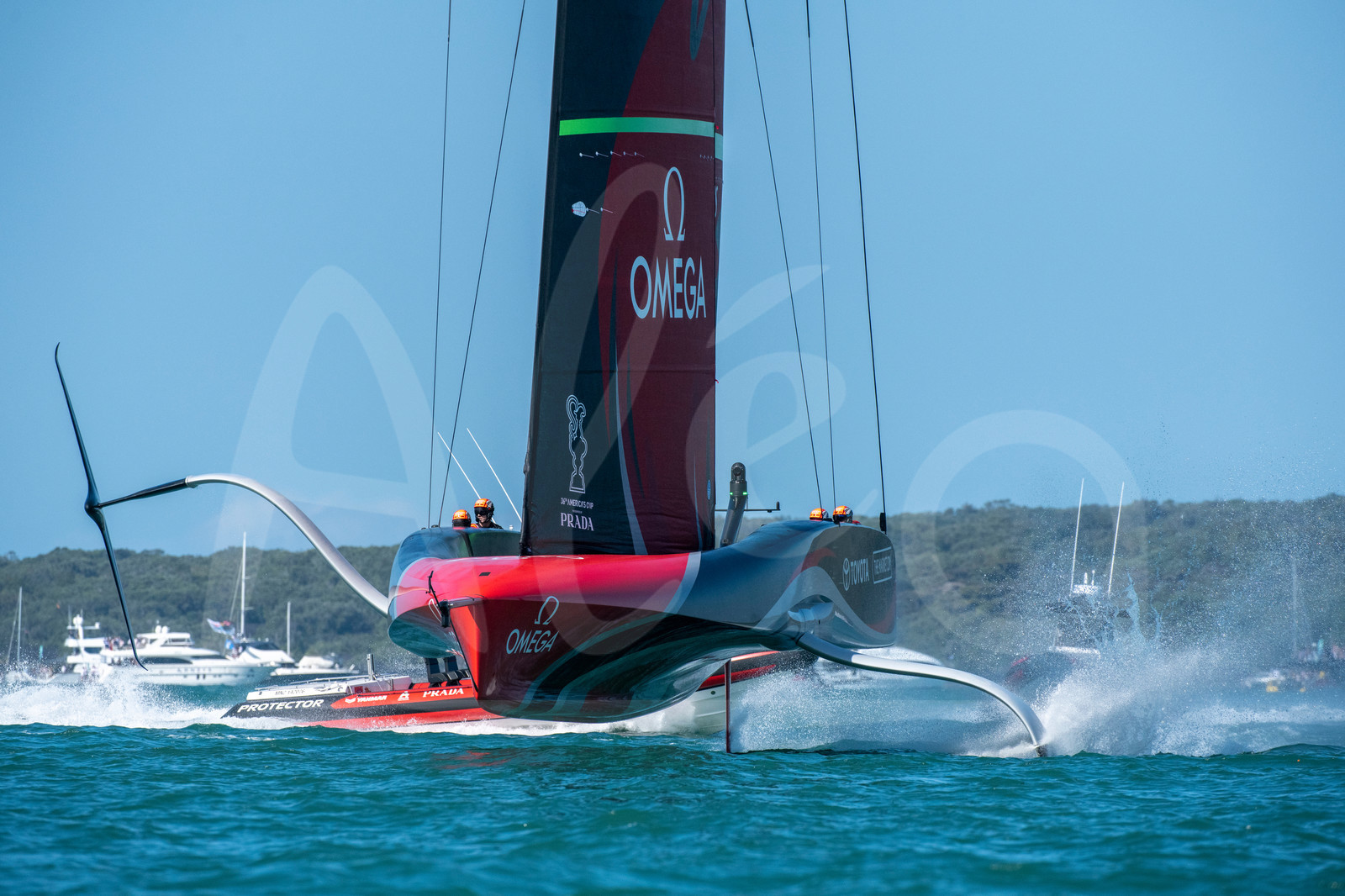 | Description | AUCKLAND, NEW-ZEALAND - DECEMBER 19: Emirates Team New Zealand chases down American Magic in their race during final day of the PRADA America's Cup World Series Race in Auckland, New-Zealand, on December 19, 2020. (photo by Chris Cameron/Alea) |