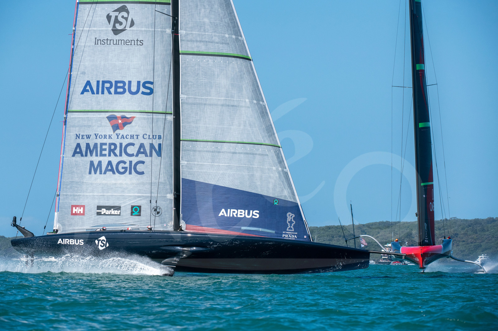 | Description | AUCKLAND, NEW-ZEALAND - DECEMBER 19: American Magic leads for a time against Emirates Team New Zealand in their race during final day of the PRADA America's Cup World Series Race in Auckland, New-Zealand, on December 19, 2020. (photo by Chris Cameron/Alea) |