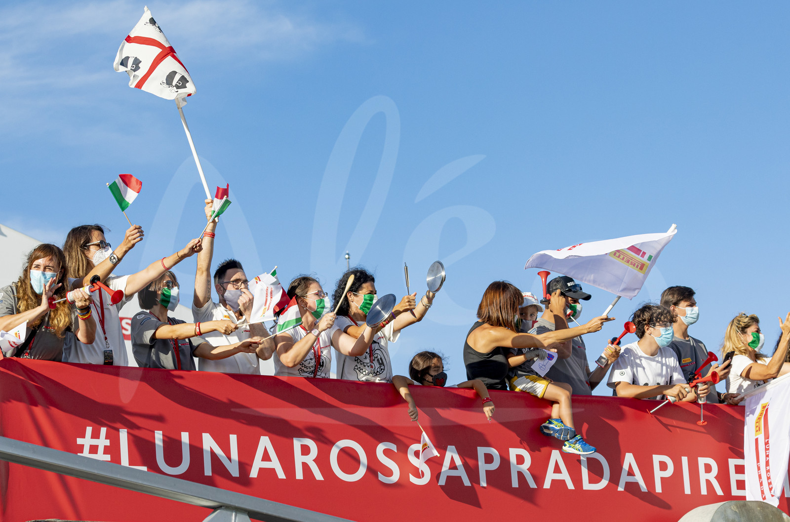 | Description | AUCKLAND, NEW-ZEALAND - FEBRUARY 21: Luna Rossa Prada Pirelli Team fans celebrate after winning the Prada Cup 2021 final, off Auckland, New-Zealand, on February 21, 2021. (photo by Stefano Gattini/Alea) |