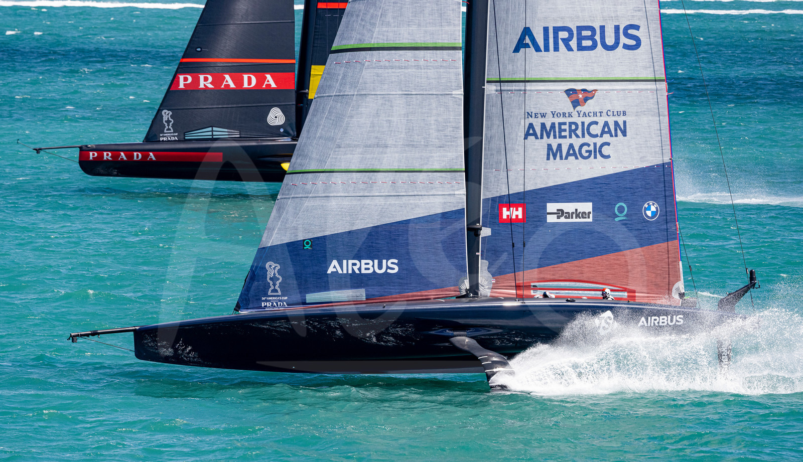 | Description | AUCKLAND, NEW-ZEALAND - JANUARY 11: Luna Rossa Prada Pirelli Team and New York Yacht Club American Magic are pictured during America's Cup presented by Prada training day 1, off Auckland, New-Zealand, on January 11, 2021. (photo by Carlo Borlenghi/Alea) . |