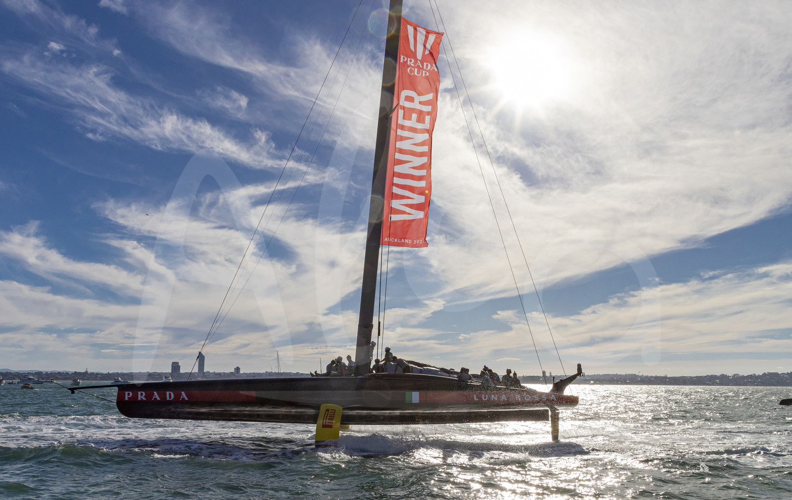 | Description | AUCKLAND, NEW-ZEALAND - FEBRUARY 21: Luna Rossa Prada Pirelli Team sailor celebrates after winning the Prada Cup 2021 final, off Auckland, New-Zealand, on February 21, 2021. (photo by Stefano Gattini/Alea) |