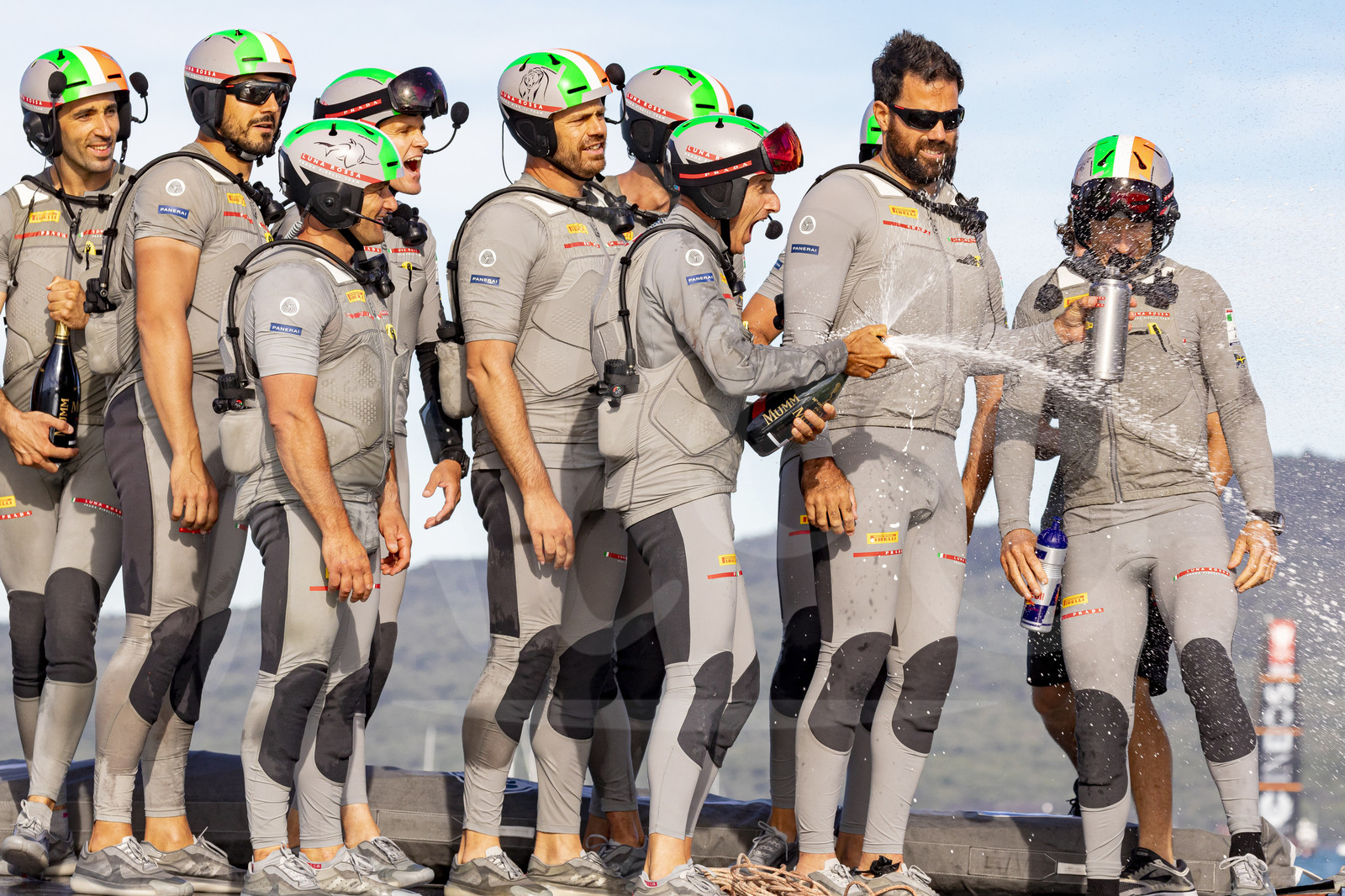 | Description | AUCKLAND, NEW-ZEALAND - FEBRUARY 21: Luna Rossa Prada Pirelli Team celebrate with champagne after winning the Prada Cup 2021 final, off Auckland, New-Zealand, on February 21, 2021. (photo by Stefano Gattini/Alea) |