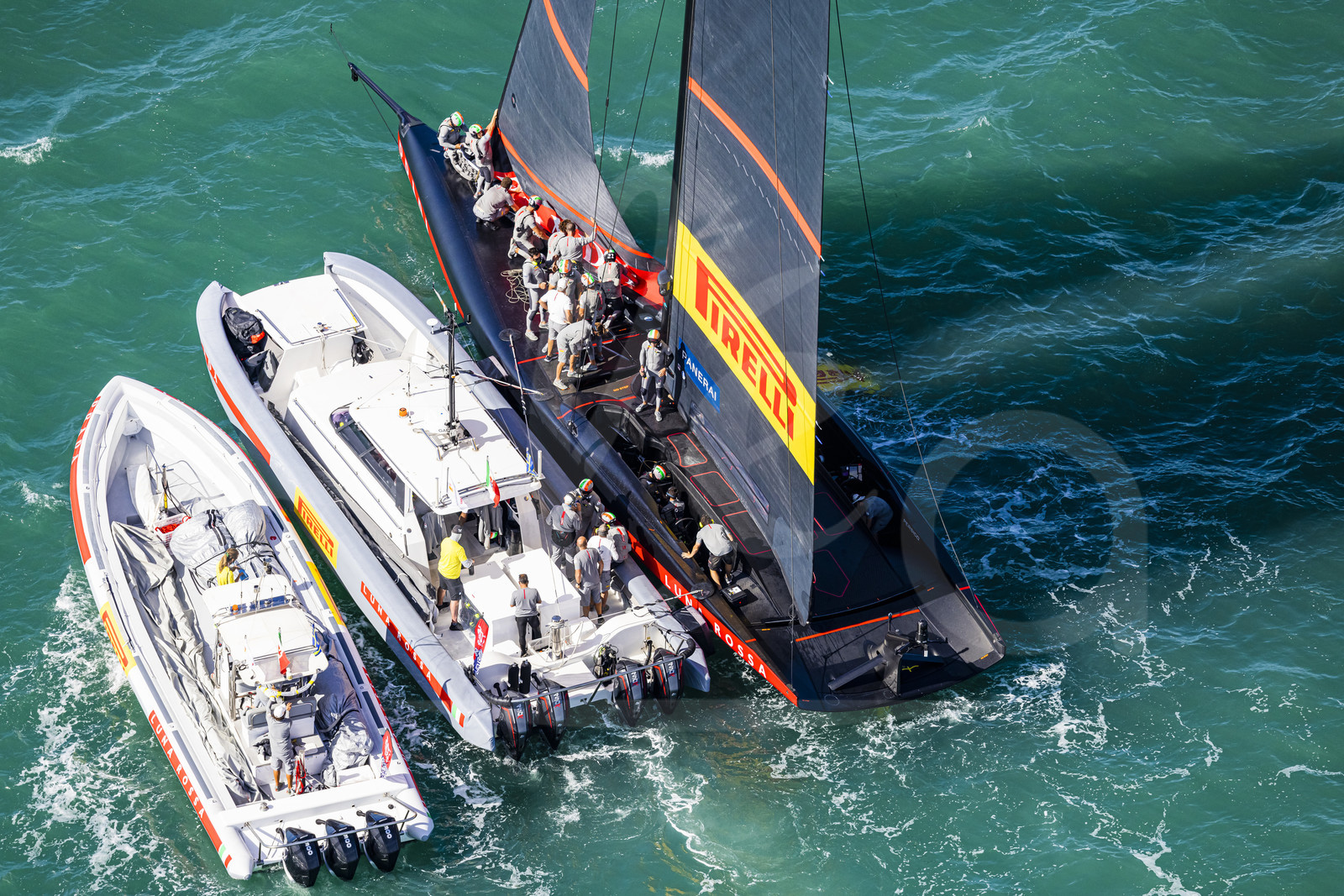 | Description | AUCKLAND, NEW-ZEALAND - FEBRUARY 21: Luna Rossa Prada Pirelli Team is illustrated with chase boats during Prada Cup 2021 final, off Auckland, New-Zealand, on February 21, 2021. (photo by Carlo Borlenghi/Alea) |