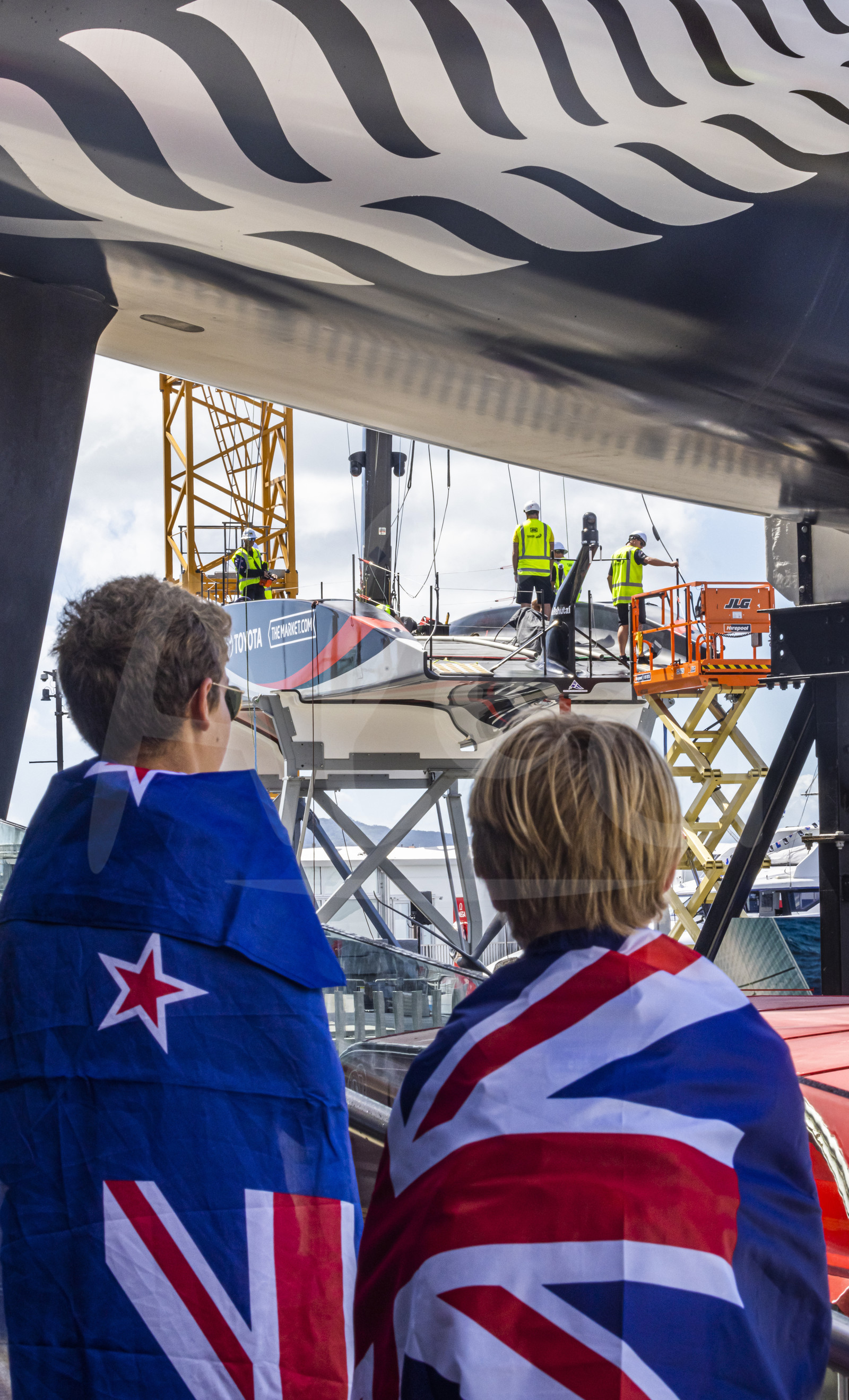| Description | AUCKLAND, NEW-ZEALAND - MARCH 15: Emirates Team New Zealand and supporters are illustrated at base during America's Cup, in Auckland, New Zealand, on March 15, 2021. (photo by Carlo Borlenghi/Alea) |