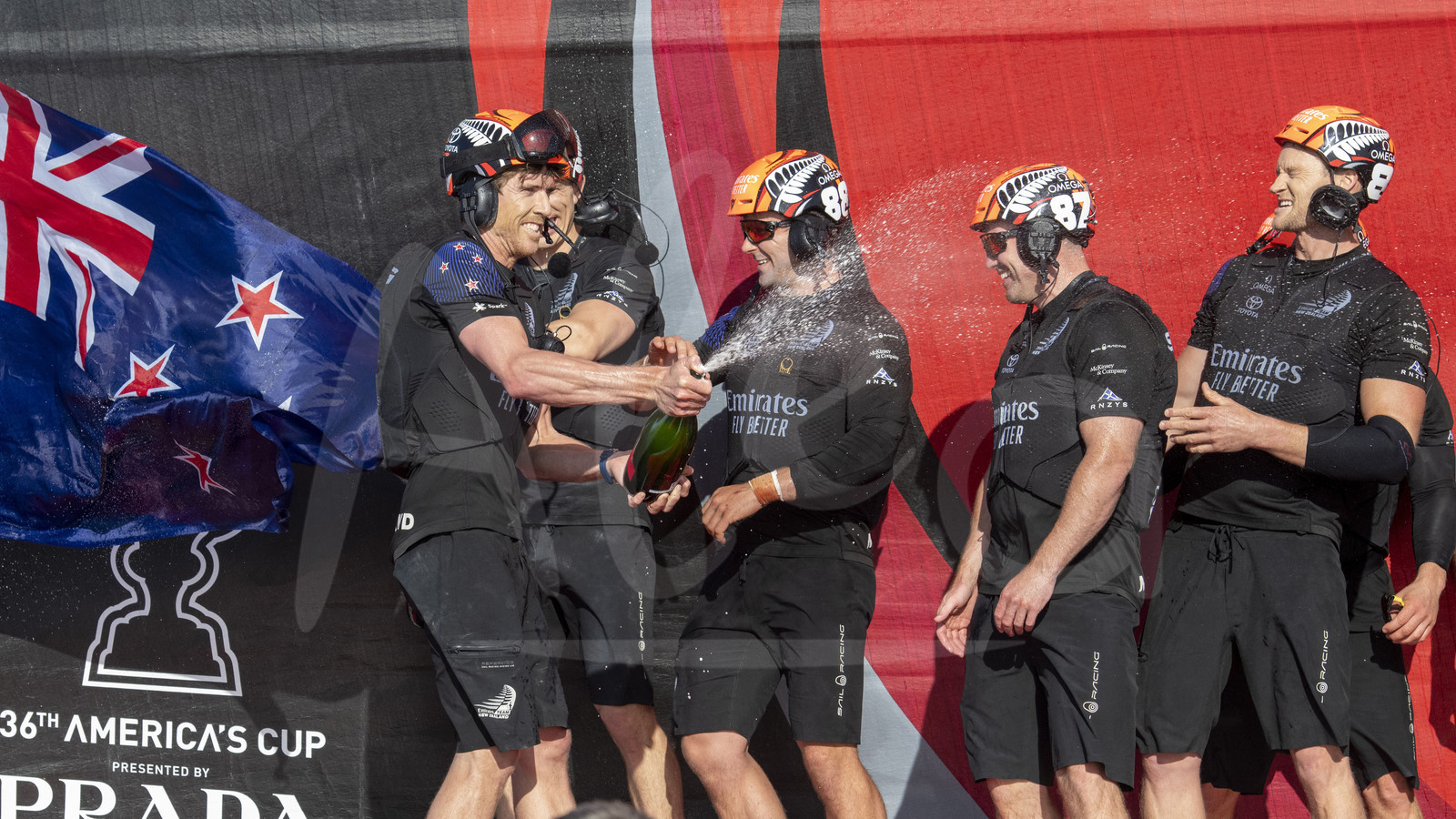 | Description | AUCKLAND, NEW-ZEALAND - MARCH 17: Emirates Team New Zealand helmsman Peter Burling sprays champagne on board after winning the America's Cup against Luna Rossa Prada Pirelli Team 7 - 3, in Auckland, New-Zealand, on March 17, 2021. (photo by Chris Cameron/Alea) |