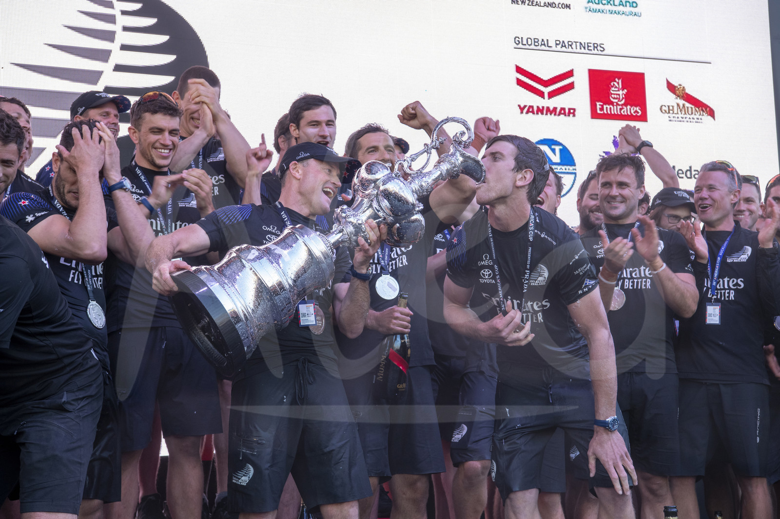 | Description | AUCKLAND, NEW-ZEALAND - MARCH 17: Emirates Team New Zealand helmsman Peter Burling drinks champagne from the cup on stage after winning the America's Cup against Luna Rossa Prada Pirelli Team 7 - 3, in Auckland, New-Zealand, on March 17, 2021. (photo by Chris Cameron/Alea) |
