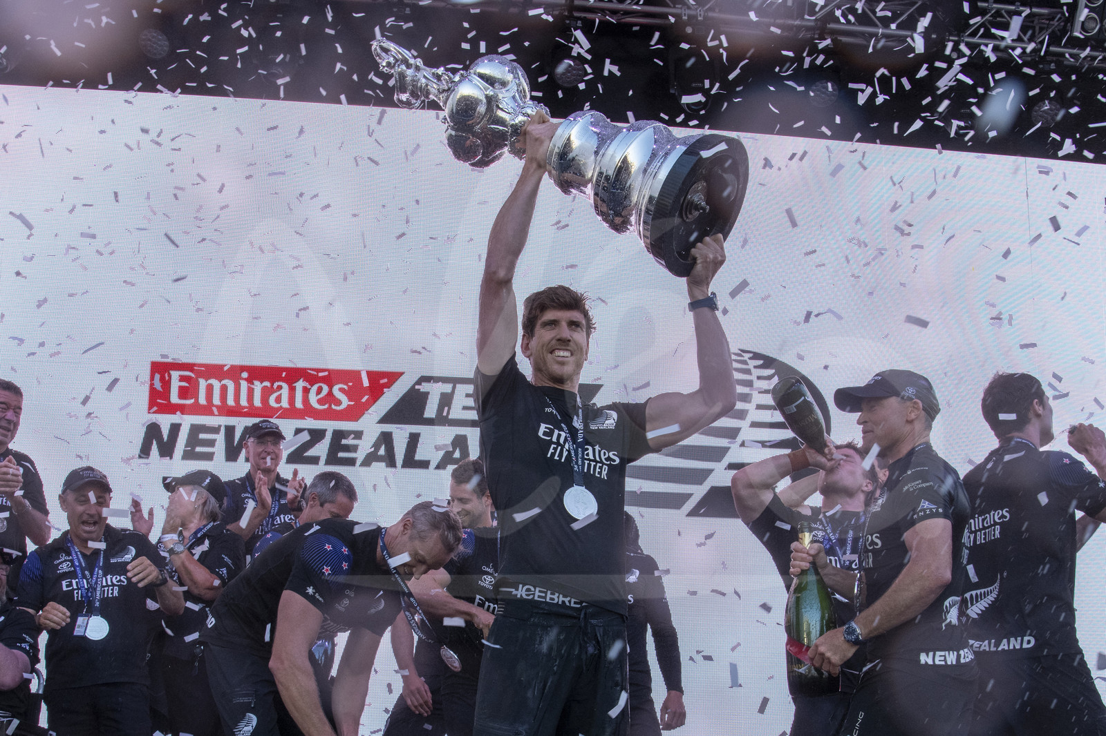 | Description | AUCKLAND, NEW-ZEALAND - MARCH 17: Emirates Team New Zealand helmsman Peter Burling lifts the cup on stage after winning the America's Cup against Luna Rossa Prada Pirelli Team 7 - 3, in Auckland, New-Zealand, on March 17, 2021. (photo by Chris Cameron/Alea) |