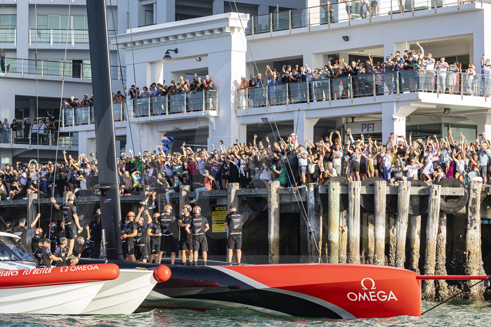 | Description | AUCKLAND, NEW-ZEALAND - MARCH 17: Emirates Team New Zealand crew members are congratulated by the public after winning the America's Cup presented by Prada, in Auckland, New-Zealand, on March 17, 2021. (photo by Stefano Gattini/Alea) |