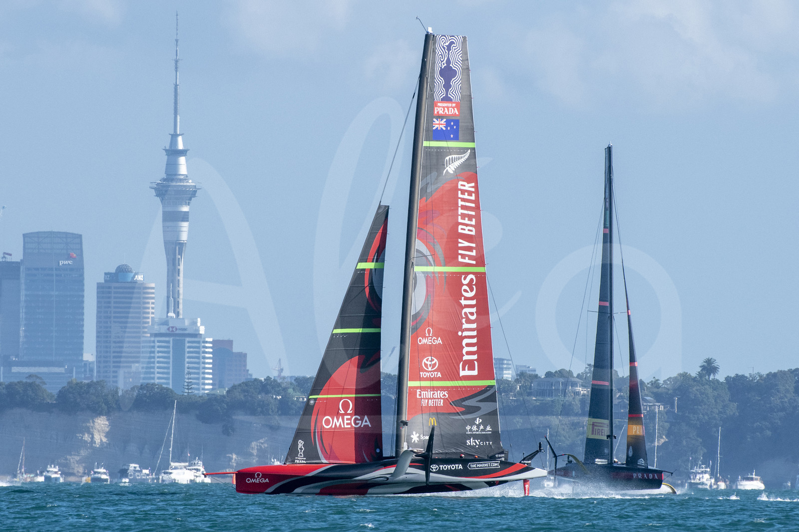 | Description | AUCKLAND, NEW-ZEALAND - MARCH 17: Emirates Team New Zealand and Luna Rossa Prada Pirelli Team compete in race ten of the America's Cup presented by Prada, in Auckland, New-Zealand, on March 17, 2021. (photo by Chris Cameron/Alea) |