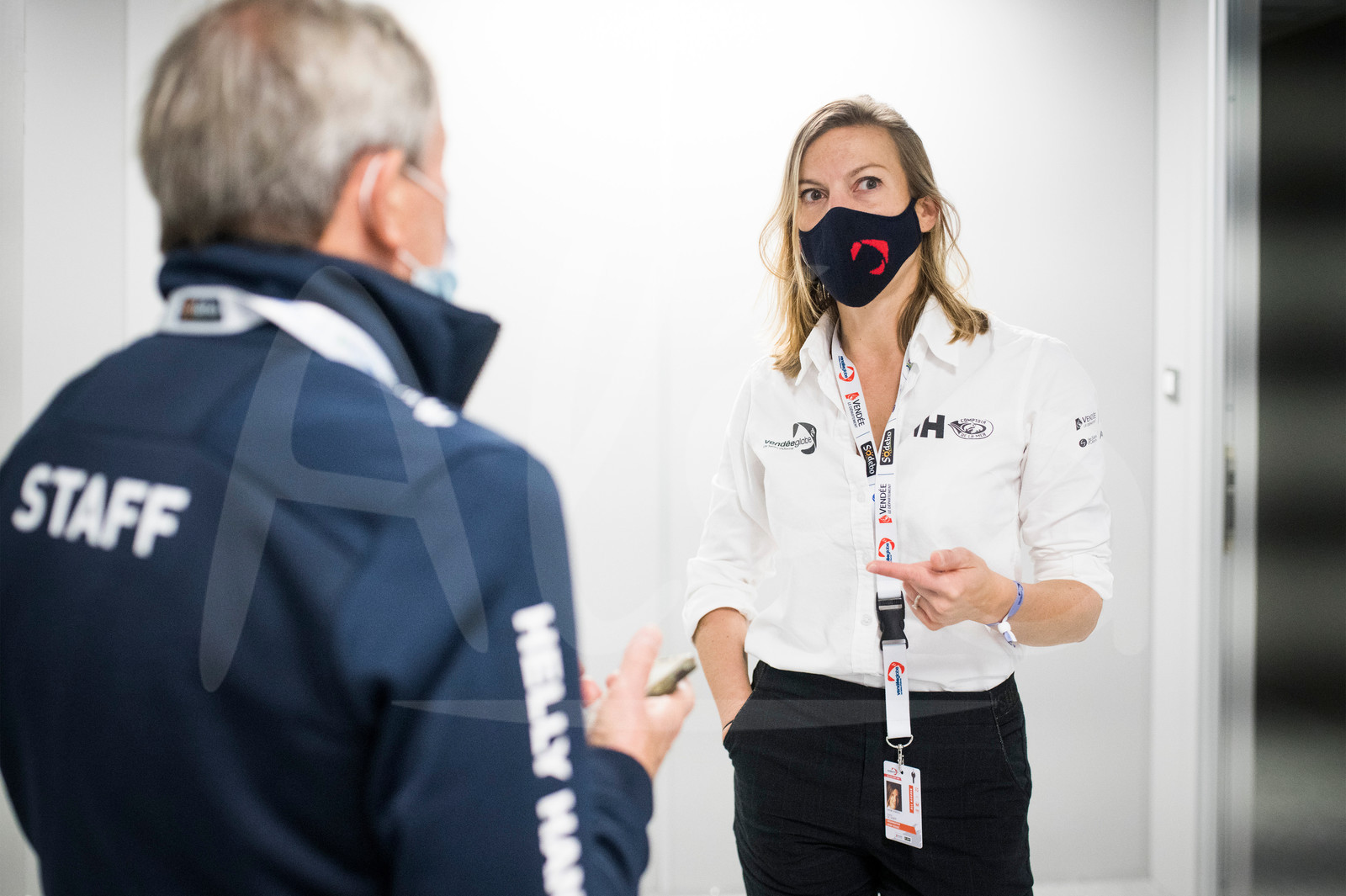| Description | #EN# LES SABLES D’OLONNE, FRANCE - OCTOBER 28: A day with Laura Le Goff (General Manager). Laura is talking with Jean-Yves Chauve (Race Doctor) at headquarters during the Vendee Globe prestart in les Sables d’Olonne, France, on October 28, 2020. (Photo by Vincent Curutchet/Alea) #FR# LES SABLES D’OLONNE, FRANCE - 28 OCTOBRE: Un jour avec Laura Le Goff (Directrice Générale). Laura discute avec Jean-Yves Chauve (Race Doctor) au PC Course lors de la semaine prestart du Vendee Globe aux Sables d’Olonne, le 28 Octobre 2020. (Photo by Vincent Curutchet/Alea) |