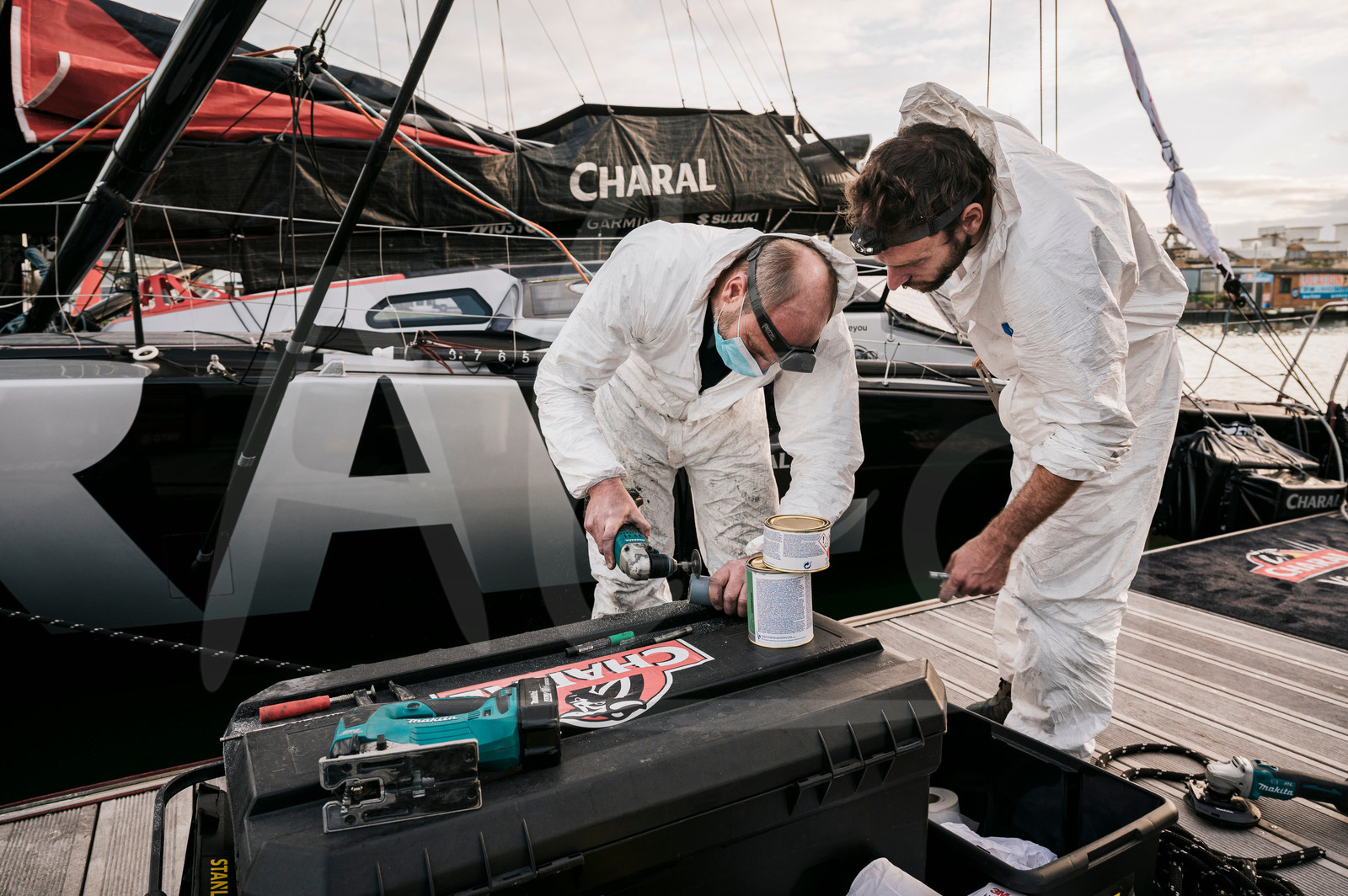 | Description | #EN# LES SABLES D’OLONNE, FRANCE - NOVEMBER 16: Team is working to repair damages on the boat Charal for skipper Jeremie Beyou during the Vendee Globe, in les Sables d’Olonne, France, on November 16, 2020. (Photo by Olivier Blanchet/Alea) #FR# LES SABLES D’OLONNE, FRANCE - 16 NOVEMBRE: L’équipe fait son maximum pour réparer le bateau Charal du skipper Jeremie Beyou pendant le Vendee Globe, aux Sables d’Olonne, le 16 Novembre 2020. (Photo by Olivier Blanchet/Alea) |