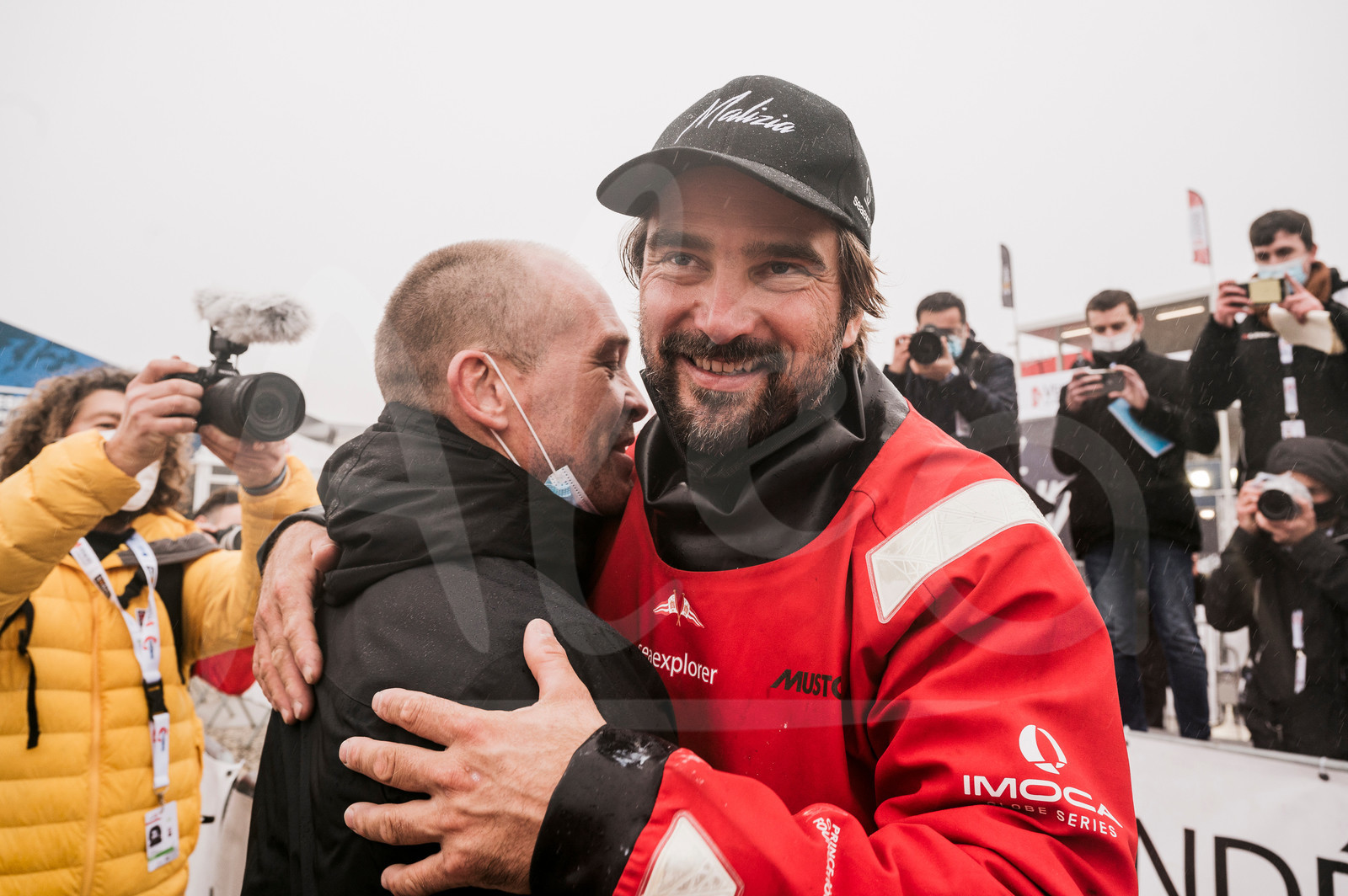 | Description | #EN# LES SABLES D’OLONNE, FRANCE - JANUARY 28: Boris Herrmann, Seaexplorer - YC de Monaco, is pictured with Kevin Escoffier during finish of the Vendee Globe sailing race, on January 28, 2021. (Photo by Olivier Blanchet/Alea) #FR# LES SABLES D’OLONNE, FRANCE - 28 JANVIER: Boris Herrmann, Seaexplorer - YC de Monaco, est photographié avec Kevin Escoffier lors de son arrivée Vendee Globe, le 28 Janvier 2021. (Photo Olivier Blanchet/Alea) |