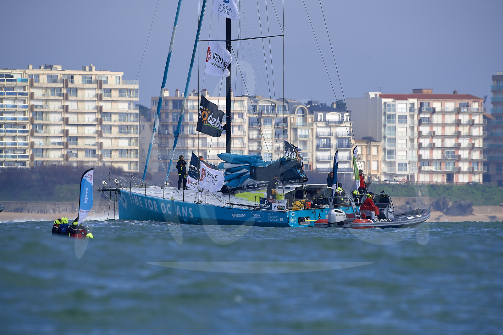| Description | #EN# LES SABLES D’OLONNE, FRANCE - FEBRUARY 12: Skipper Stephane Le Diraison, Time For Oceans, is pictured before entering the channel during arrival of the Vendee Globe sailing race, on February 12, 2021. (Photo by Yvan Zedda/Alea) #FR# LES SABLES D’OLONNE, FRANCE - 12 FEVRIER: Le skipper Stephane Le Diraison, Time For Oceans, est photographié avant d’embouquer le chenal lors de son arrivée du Vendee Globe, le 12 Février 2021. (Photo Yvan Zedda/Alea) |