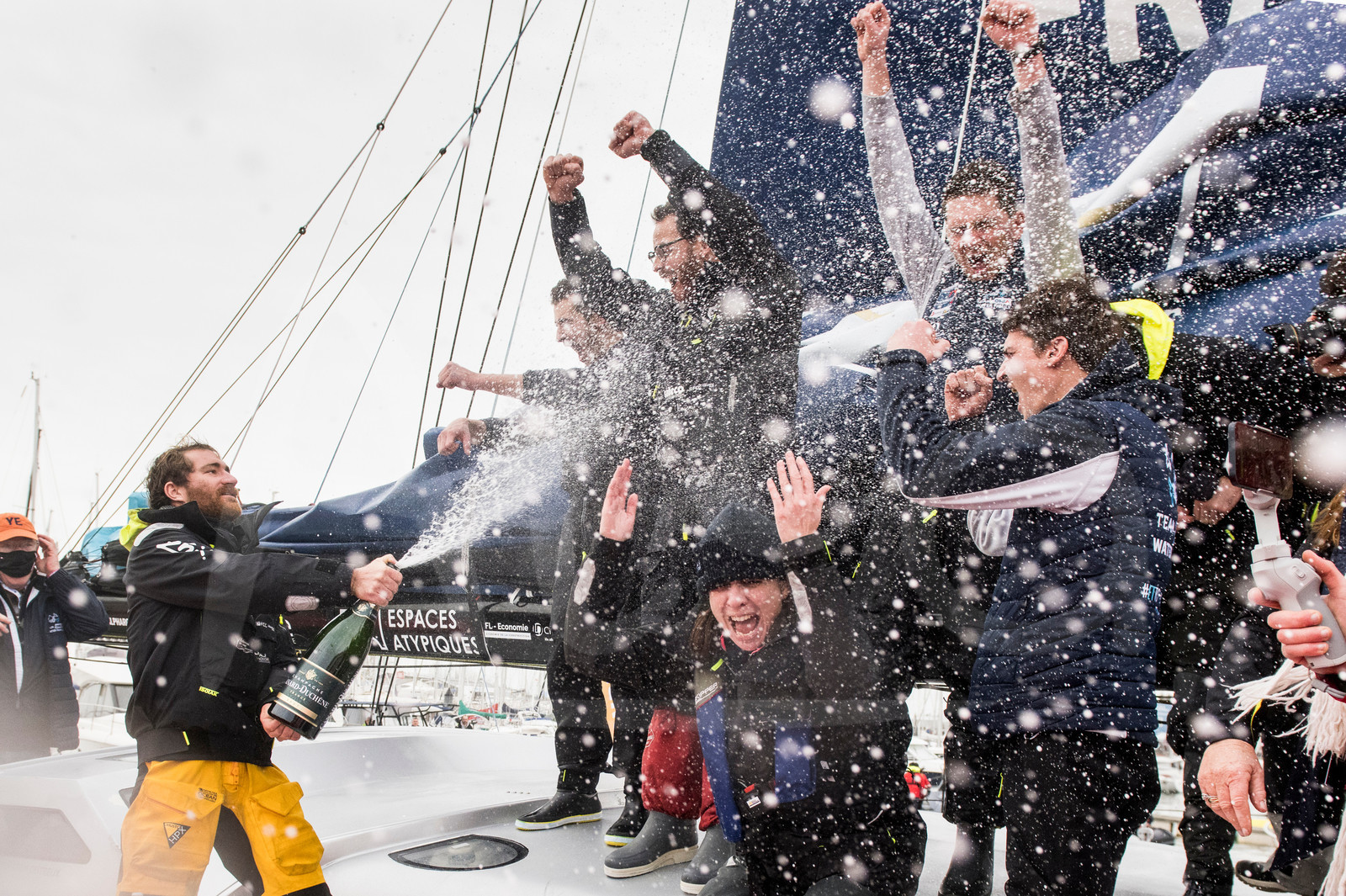 | Description | #EN# LES SABLES D’OLONNE, FRANCE - JANUARY 29: OMIA - Water Family, skipper Benjamin Dutreux, is pictured celebrating with champagne and his team during arrival of the Vendee Globe sailing race, on January 29, 2021. (Photo by Vincent Curutchet/Alea) #FR# LES SABLES D’OLONNE, FRANCE - 29 JANVIER: OMIA - Water Family, skipper Benjamin Dutreux, est photographié en train de célébrer au champagne avec son équipe lors de son arrivée du Vendee Globe, le 29 Janvier 2021. (Photo Vincent Curutchet/Alea) |