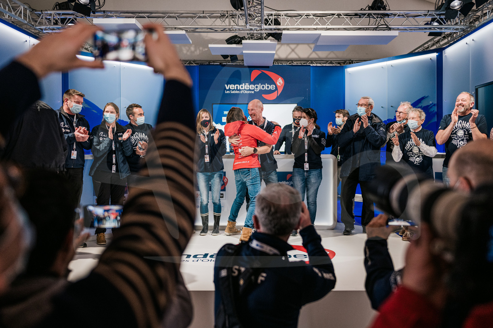 | Description | #EN# LES SABLES D’OLONNE, FRANCE - MARCH 05 : Skipper Ari Huusela (FIN), STARK, is at his press conference congratulated by Sam Davies and the organisation team during arrival of the Vendee Globe sailing race, on March 05, 2021. (Photo by Jean-Louis Carli/Alea) #FR# LES SABLES D’OLONNE, FRANCE - 05 MARS : Le skipper Ari Huusela (FIN), STARK, est photographié à sa conférence de presse félicité par Sam Davies et l’équipe d’organisation pendant son arrivée dans la course du Vendee Globe, le 05 Mars 2021. (Photo Jean-Louis Carli/Alea) |