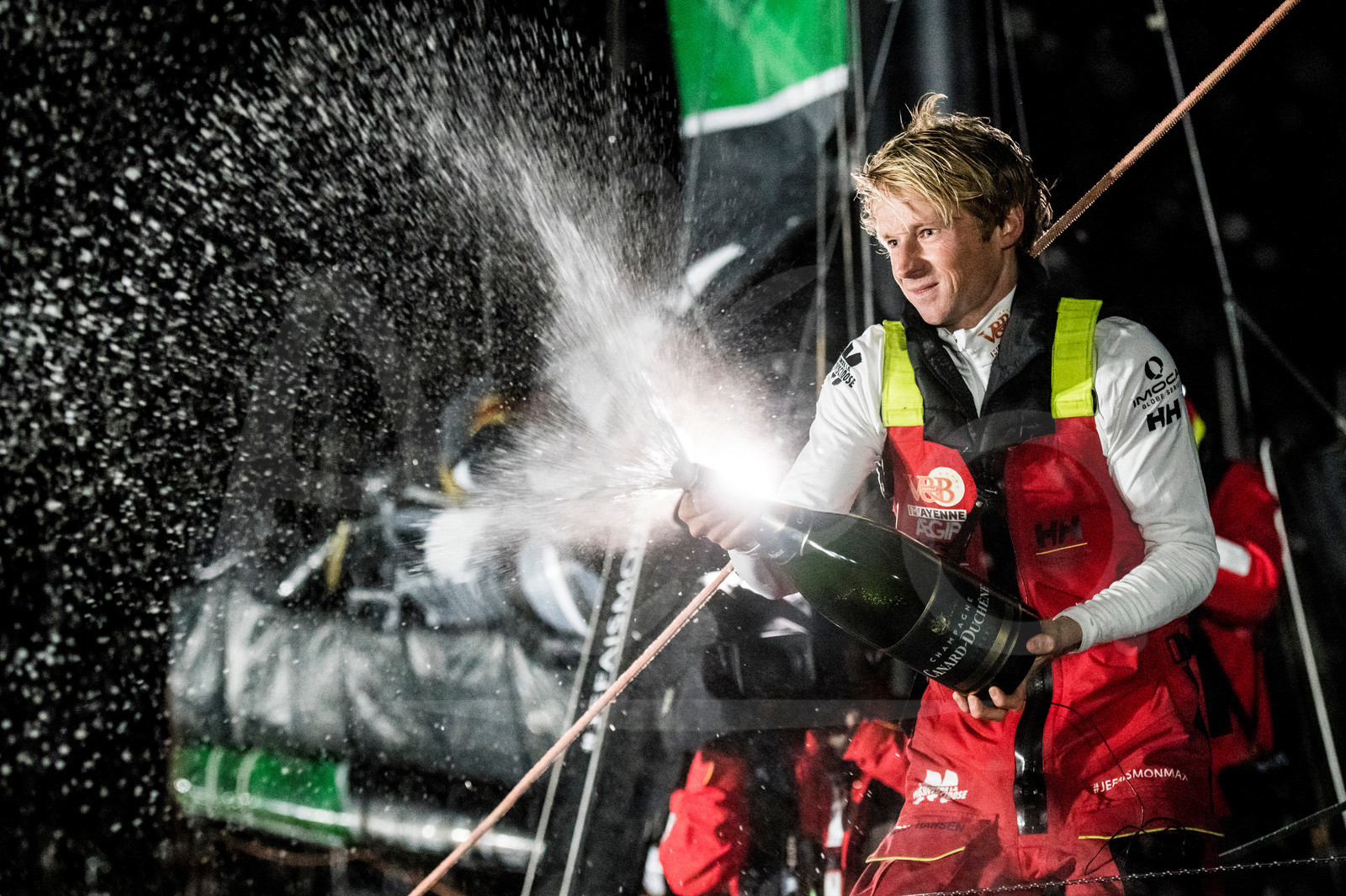 | Description | #EN# LES SABLES D’OLONNE, FRANCE - JANUARY 30: Skipper Maxime Sorel, VandB - Mayenne, is pictured at pontoon with champagne during arrival of the Vendee Globe sailing race, on January 30, 2021. (Photo by Vincent Curutchet/Alea) #FR# LES SABLES D’OLONNE, FRANCE - 30 JANVIER: Skipper Maxime Sorel, VandB - Mayenne, est photographié au ponton avec du champagne lors de son arrivée du Vendee Globe, le 30 Janvier 2021. (Photo Vincent Curutchet/Alea) |