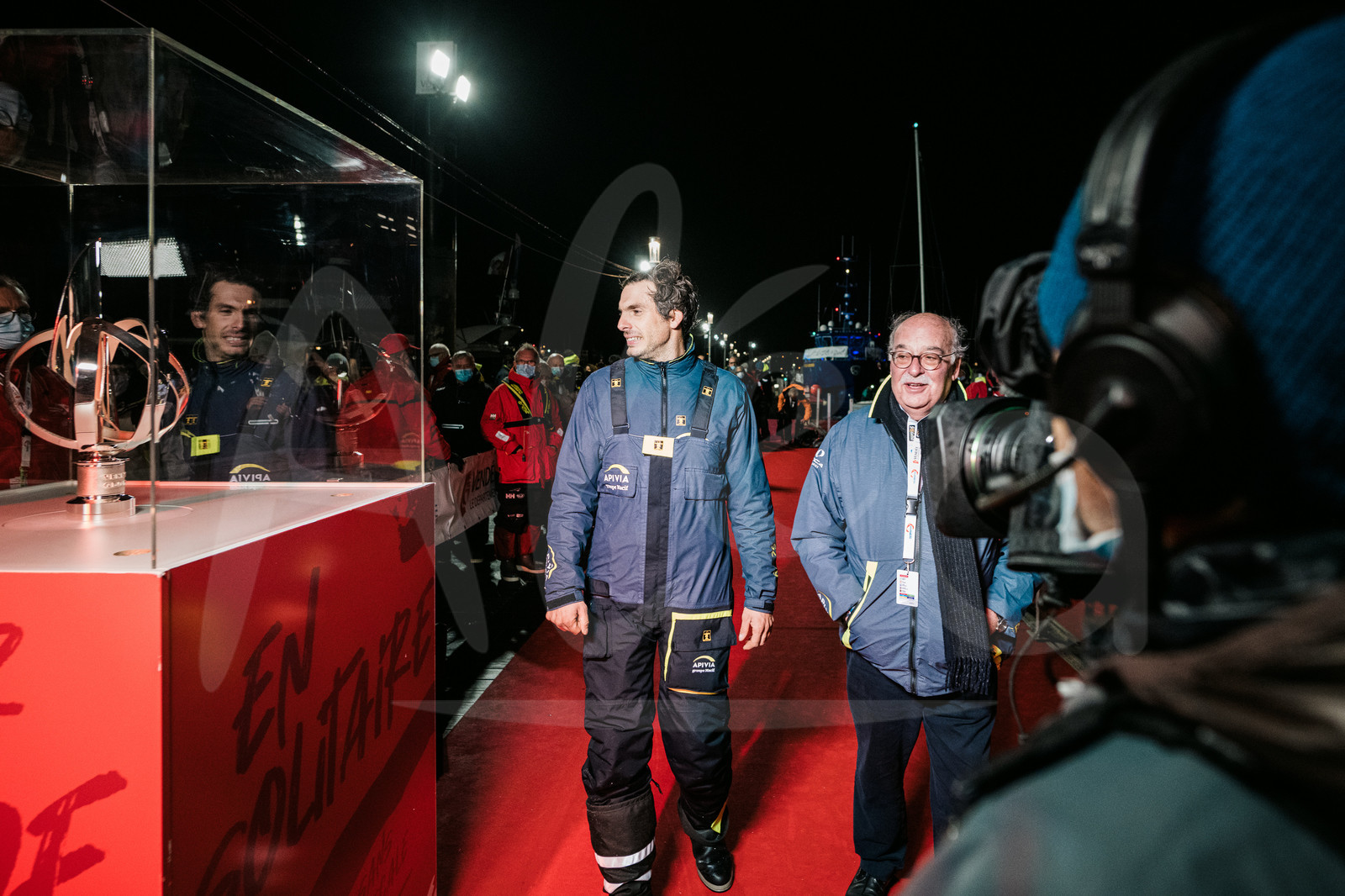 | Description | #EN# LES SABLES D’OLONNE, FRANCE - JANUARY 27: Skipper Charlie Dalin, Apivia, is looking at the trophy after crossing first the finish line of the Vendee Globe sailing race, on January 27, 2021. (Photo by Jean-Louis Carli/Alea) #FR# LES SABLES D’OLONNE, FRANCE - 27 JANVIER: Le skipper Charlie Dalin, Apivia, regarde le trophée après avoir franchi en premier la ligne d’arrivée du Vendee Globe, le 27 Janvier 2021. (Photo Jean-Louis Carli/Alea) |