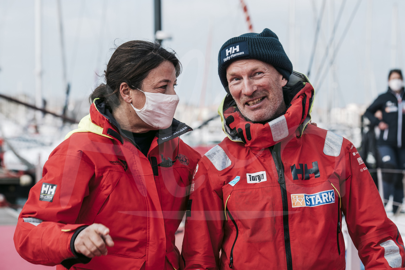 | Description | #EN# LES SABLES D’OLONNE, FRANCE - MARCH 05 : Skipper Ari Huusela (FIN), STARK, is pictured with Stephanie Ruchaud during arrival of the Vendee Globe sailing race, on March 05, 2021. (Photo by Olivier Blanchet/Alea) #FR# LES SABLES D’OLONNE, FRANCE - 05 MARS : Le skipper Ari Huusela (FIN), STARK, est photographié avec Stephanie Ruchaud pendant son arrivée dans la course du Vendee Globe, le 05 Mars 2021. (Photo Olivier Blanchet/Alea) |