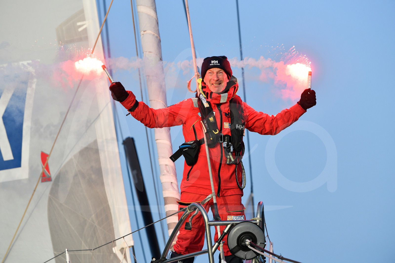 | Description | #EN# LES SABLES D’OLONNE, FRANCE - MARCH 05 : Skipper Ari Huusela (FIN), STARK, is pictured celebrating with flares in the channel during arrival of the Vendee Globe sailing race, on March 05, 2021. (Photo by Jean-Louis Carli/Alea) #FR# LES SABLES D’OLONNE, FRANCE - 05 MARS : Le skipper Ari Huusela (FIN), STARK, est photographié célébrant aux feux à main dans le chenal pendant son arrivée dans la course du Vendee Globe, le 05 Mars 2021. (Photo Jean-Louis Carli/Alea) |