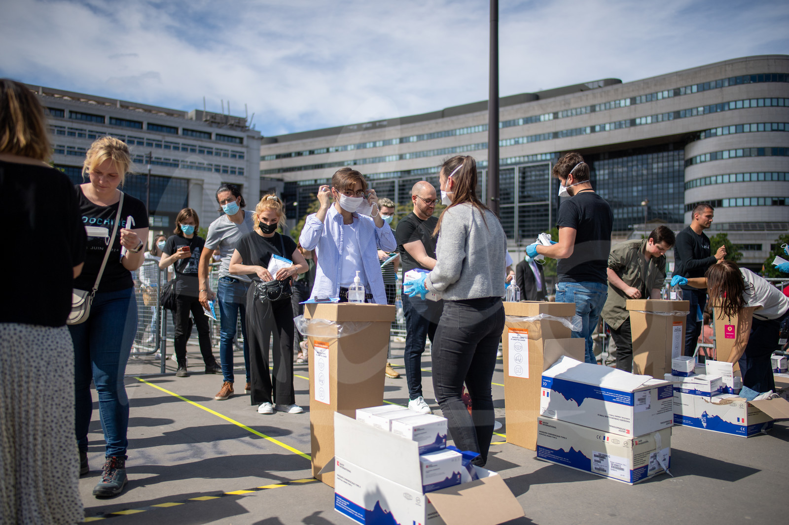 PARIS, FRANCE - 29 MAI: Des masques et du gel sont distribués au public dans le cadre du protocole lors de l’étude médicale et concert test Ambition Live Again qui se déroule à l’AccorHotels Arena de Paris, le 29 Mai 2021. (Photo Jean-Louis Carli/Alea)