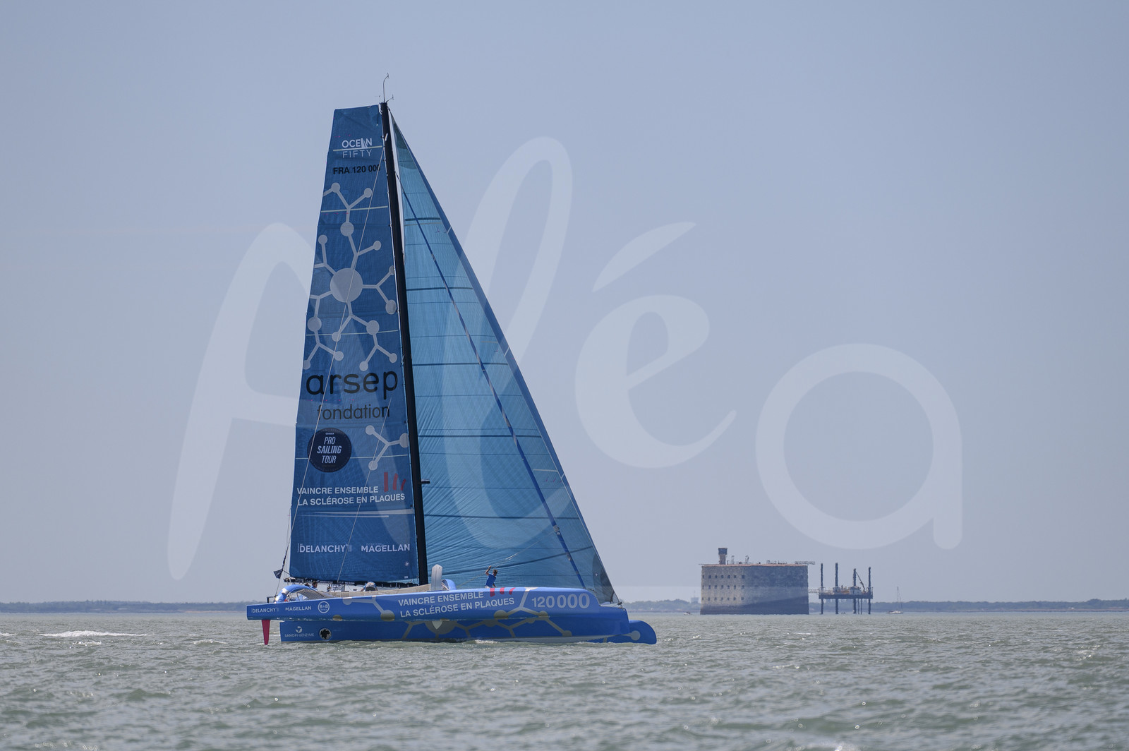 | Description | LA ROCHELLE, FRANCE - MAY 30: The Ocean Fifty Solidaires en peloton-Arsep with skipper Thibault Vauchel-Camus is illustrated with Fort Boyard in the background during the Pro Sailing Tour stage in La Rochelle, France, on May 30th, 2021. (Photo by Olivier Blanchet / Alea) |