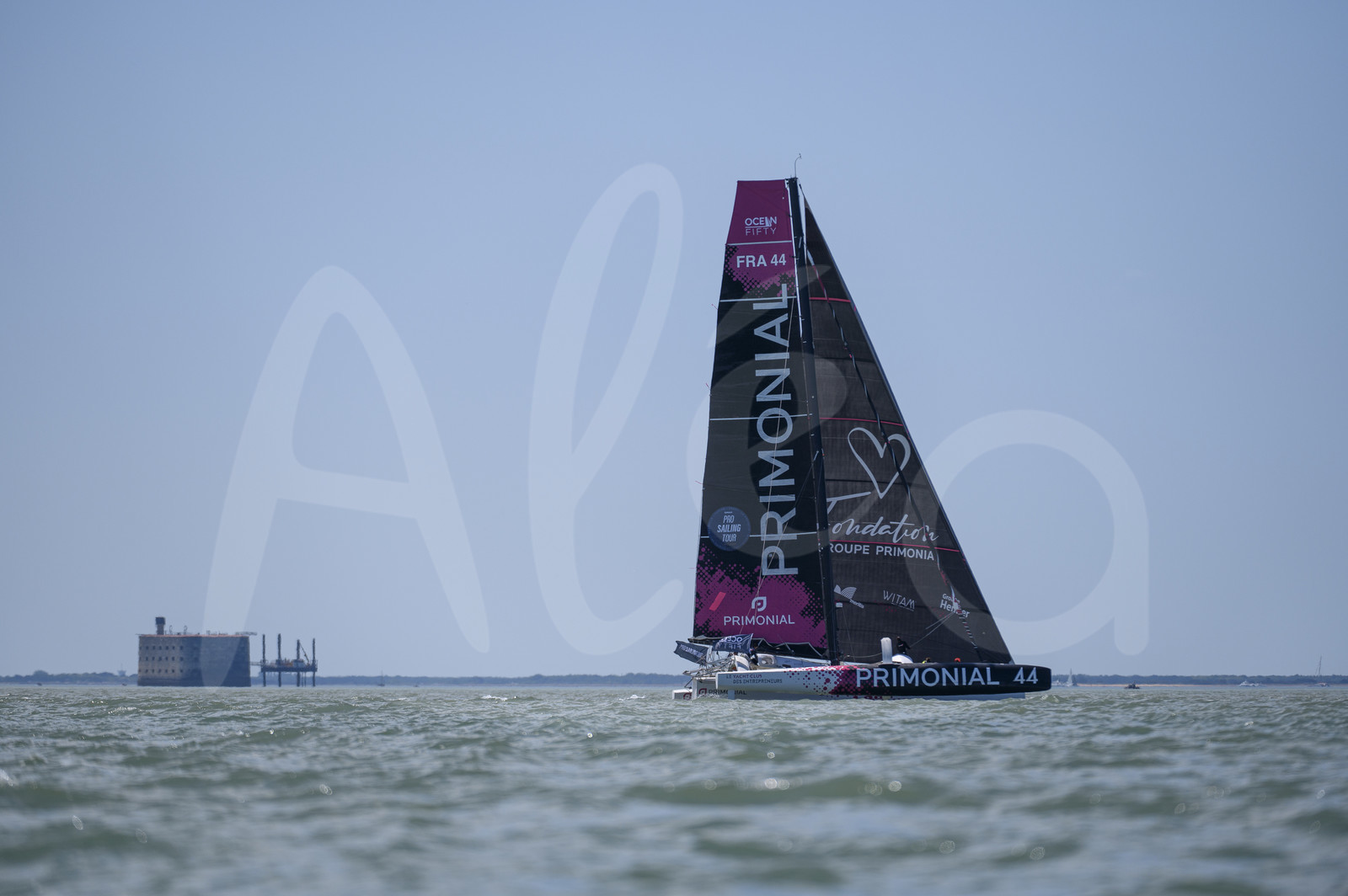 | Description | LA ROCHELLE, FRANCE - MAY 30: The Ocean Fifty Primonial with his skipper Sebastien Rogues is illustrated with Fort Boyard in the background during the Pro Sailing Tour stage in La Rochelle, France, on May 30th, 2021. (Photo by Olivier Blanchet / Alea) |
