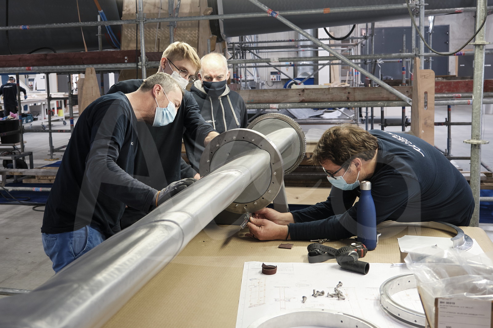 | Description | Construction du trimaran Ultim M101 (François Gabart) dans les locaux de Mer Concept à Concarneau le 02/11/2020 - pièce de safran - Photo Benoit Stichelbaut / Alea |