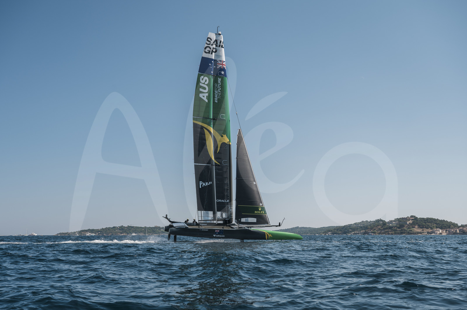 | Description | ST TROPEZ, FRANCE - SEPTEMBER 11: Tom Slingsby’s Australia SailGP Team is competing during race day of SailGP on Saint-Tropez Harbour on September 11, 2021 in St Tropez, France. (Photo by Olivier Blanchet /Alea) |