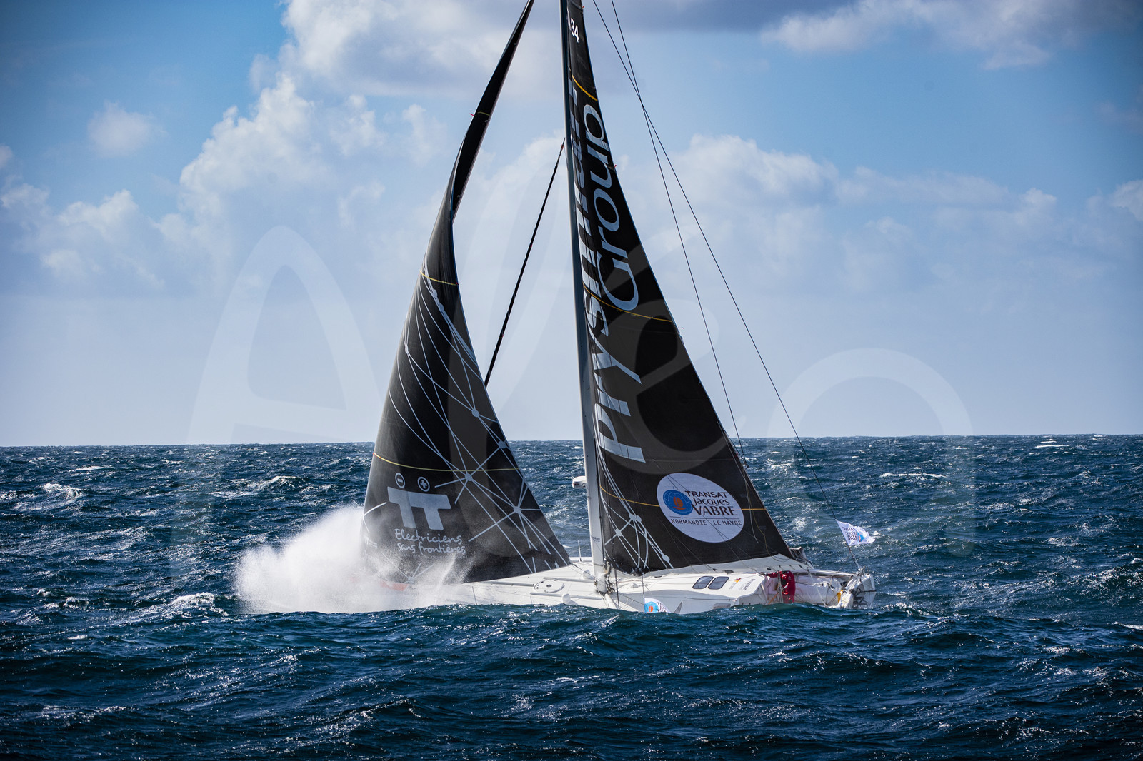| Description | LORIENT, FRANCE - SEPTEMBER 27: Skippers Giancarlo Pedote and Martin Le Pape are training on the Imoca Prysmian Group, prior to the Transat Jacques Vabre, sailing race in duo from Le Havre to Fort de France, on September 27, 2021 off Lorient, France. (Photo by Bernard Le Bars/ALeA) |