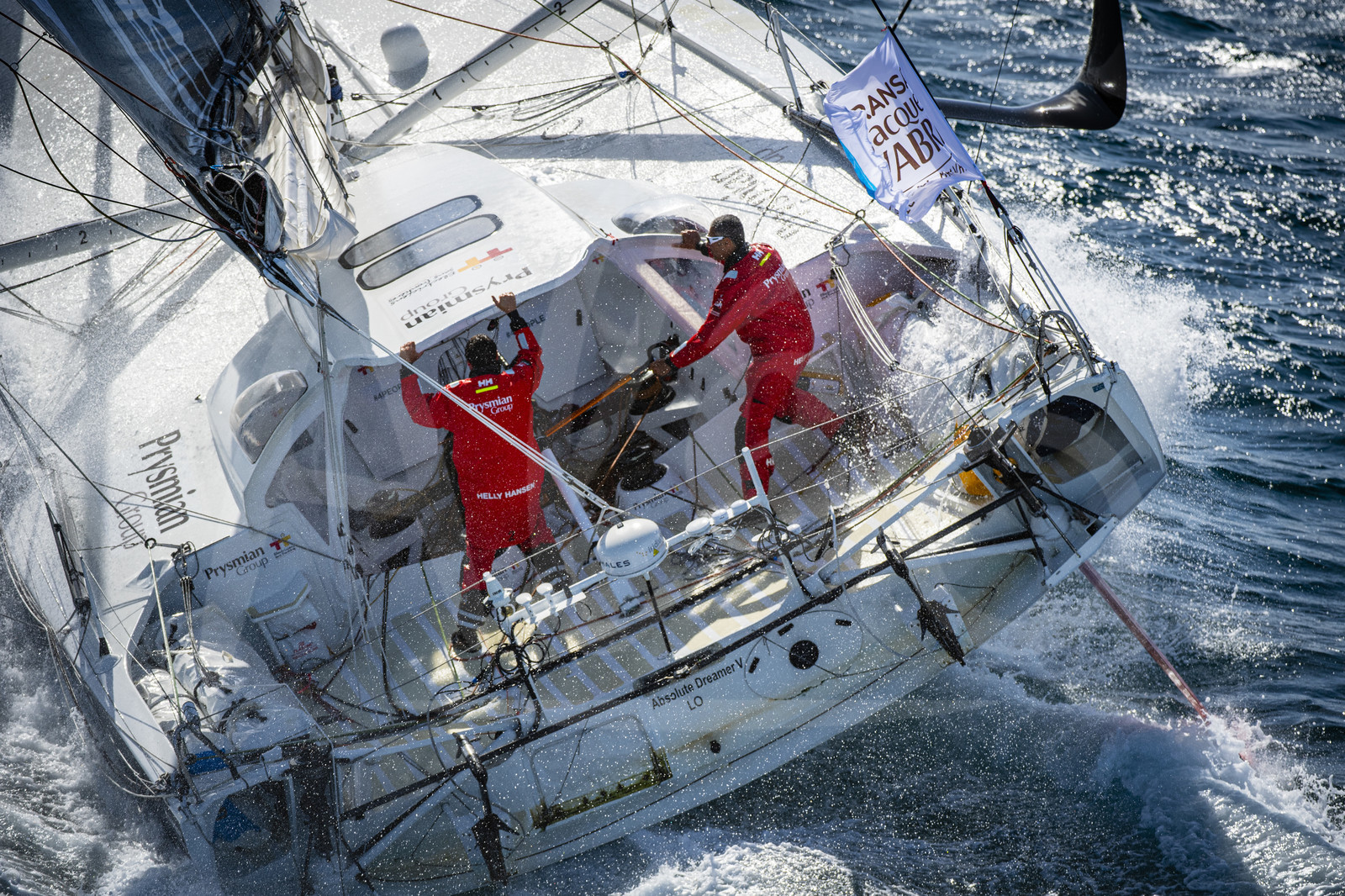 | Description | LORIENT, FRANCE - SEPTEMBER 27: Skippers Giancarlo Pedote and Martin Le Pape are training on the Imoca Prysmian Group, prior to the Transat Jacques Vabre, sailing race in duo from Le Havre to Fort de France, on September 27, 2021 off Lorient, France. (Photo by Bernard Le Bars/ALeA) |