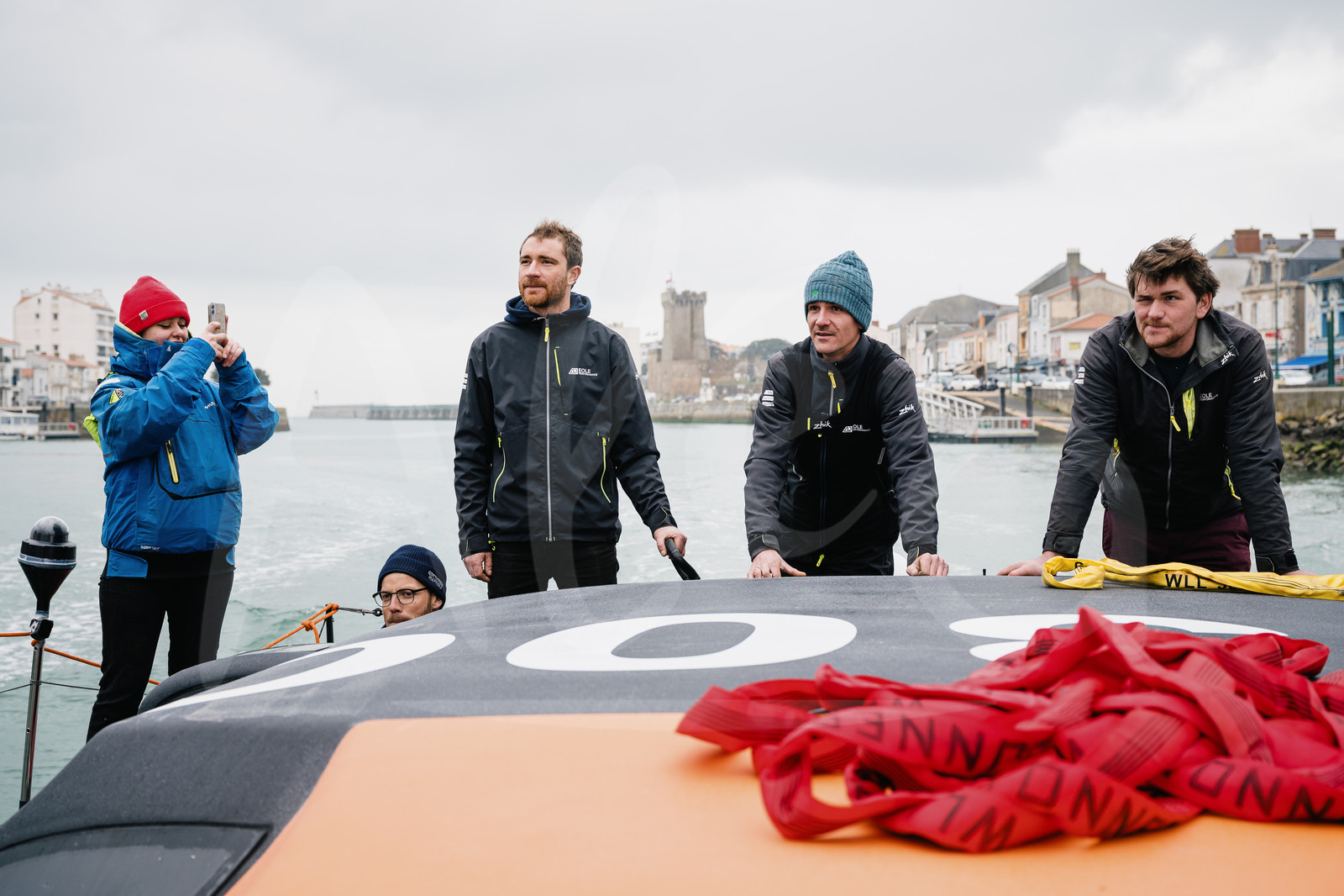 | Description | LES SABLES D’OLONNE, FRANCE - FEBRUARY 10 : French skipper Benjamin Dutreux and his team Eole Performance are receiving their new Imoca boat, ex-11th Hour, for their Vendee Globe 2024 campaign, in Les Sables d’Olonne, on February 10th, 2022. (photo by Jean-Louis Carli / Alea) |