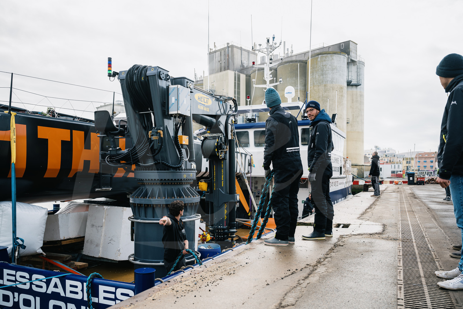 | Description | LES SABLES D’OLONNE, FRANCE - FEBRUARY 10 : French skipper Benjamin Dutreux and his team Eole Performance are receiving their new Imoca boat, ex-11th Hour, for their Vendee Globe 2024 campaign, in Les Sables d’Olonne, on February 10th, 2022. (photo by Jean-Louis Carli / Alea) |