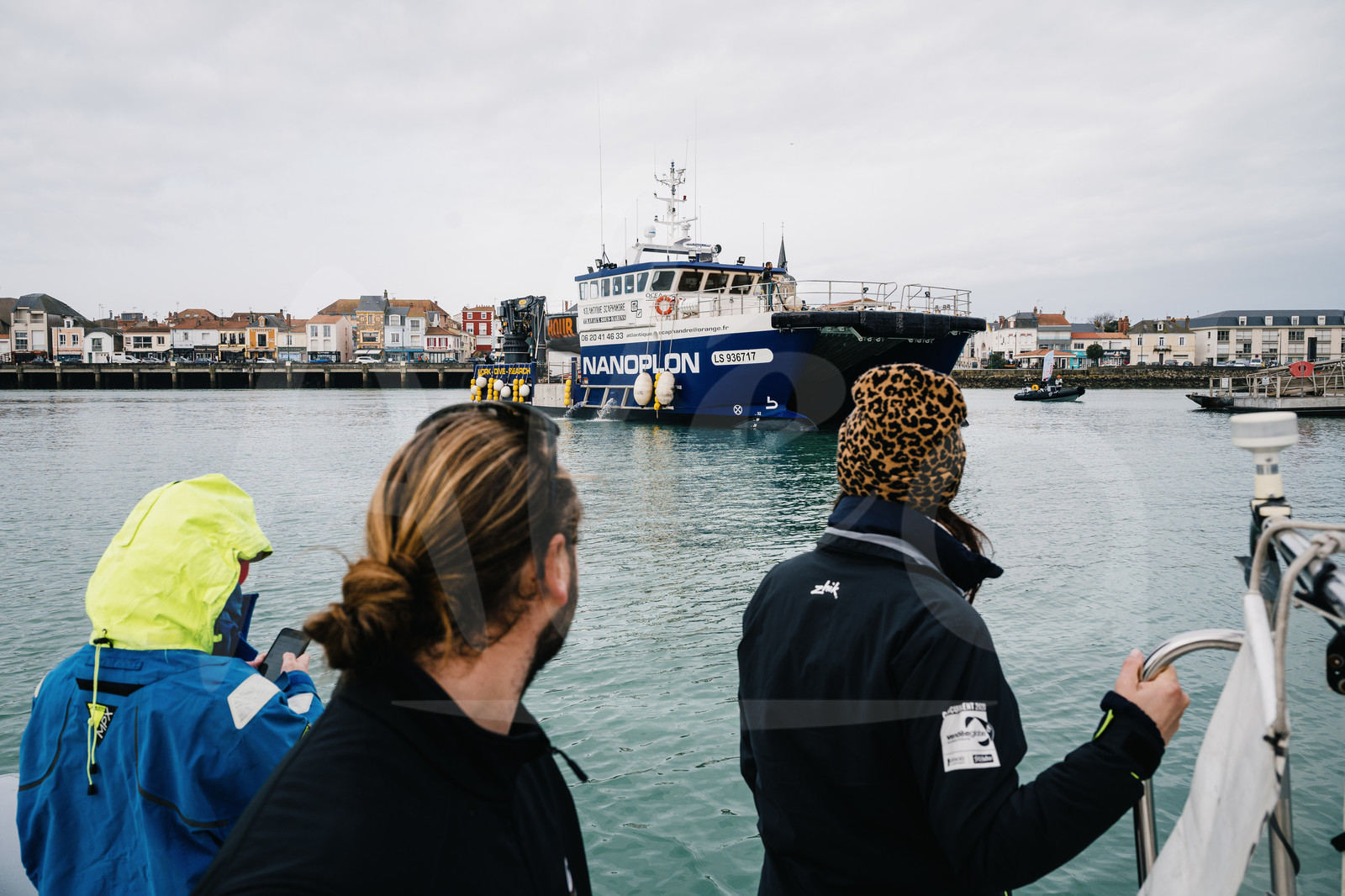 | Description | LES SABLES D’OLONNE, FRANCE - FEBRUARY 10 : French skipper Benjamin Dutreux and his team Eole Performance are receiving their new Imoca boat, ex-11th Hour, for their Vendee Globe 2024 campaign, in Les Sables d’Olonne, on February 10th, 2022. (photo by Jean-Louis Carli / Alea) |