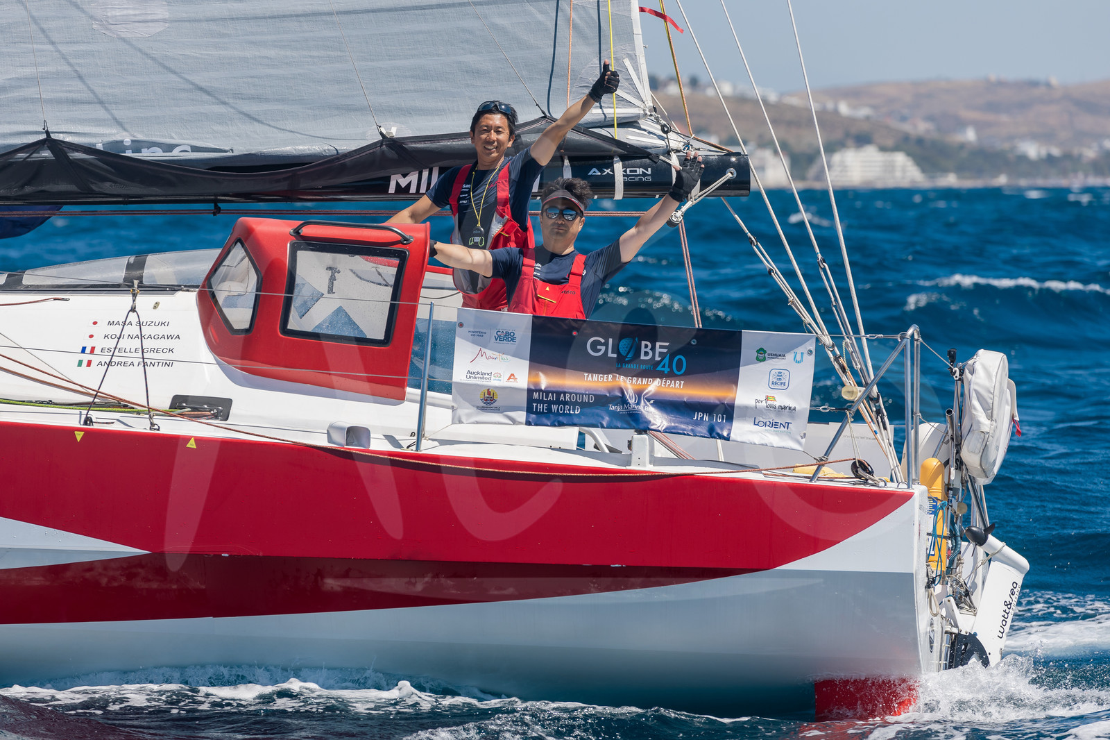 | Description | Le Class40 MILAI AROUND THE WORLD de Masa Suzuki et Koji Nakagawa (JAP) est photographié lors du grand départ de la première édition de la Globe40 à Tanger (Maroc), Etape Tanger Cap-Vert le 26 juin 2022 - © Jean-Marie LIOT / Alea |