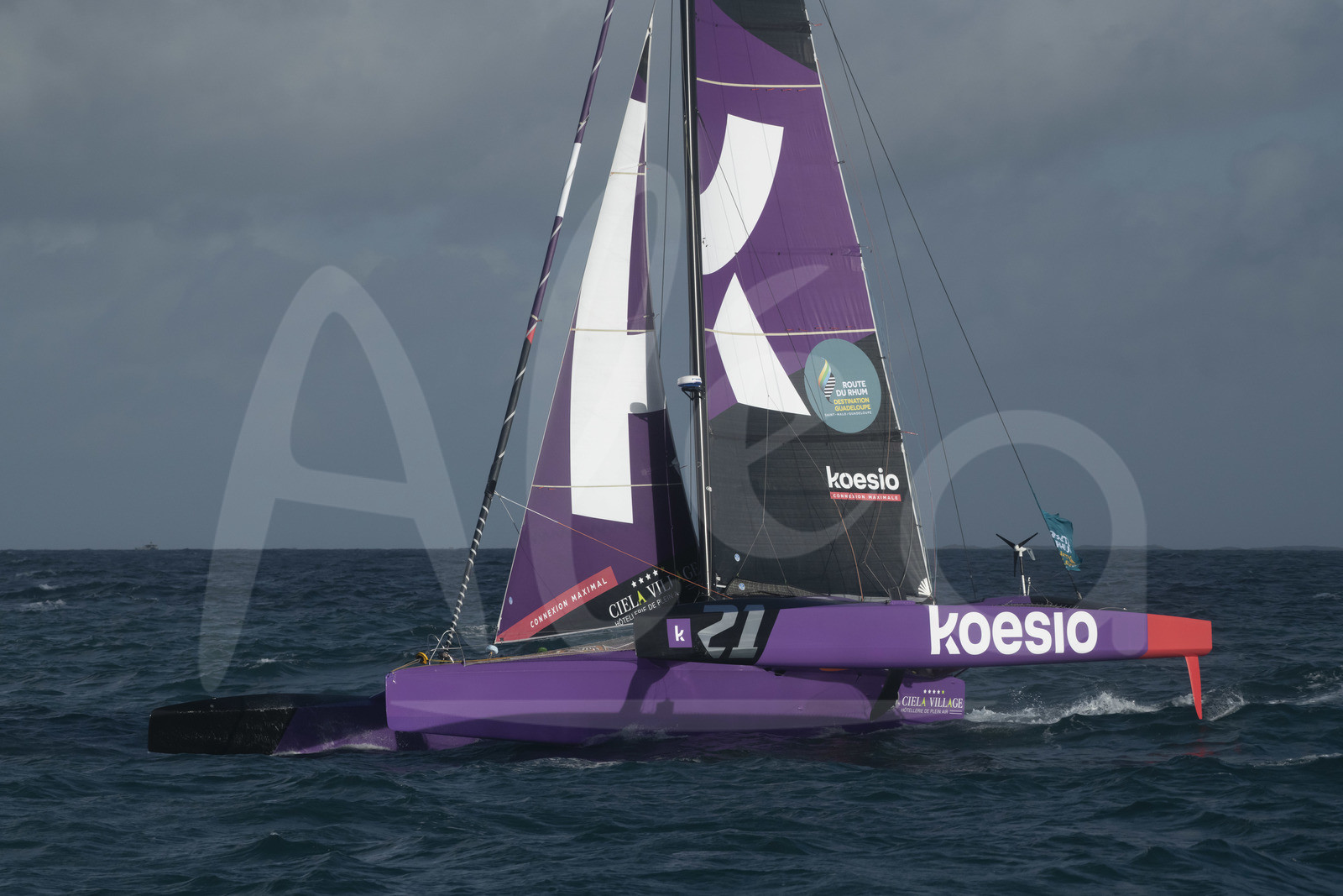 | Description | SAINT-MALO, FRANCE - NOVEMBRE 9 : Ocean Fifty Koesio, skipper Erwan Le Roux, is illustrated during start of La Route du Rhum - Destination Guadeloupe 2022 on November 9, 2022, in Saint-Malo, France. (photo Vincent Curutchet / AleA) |