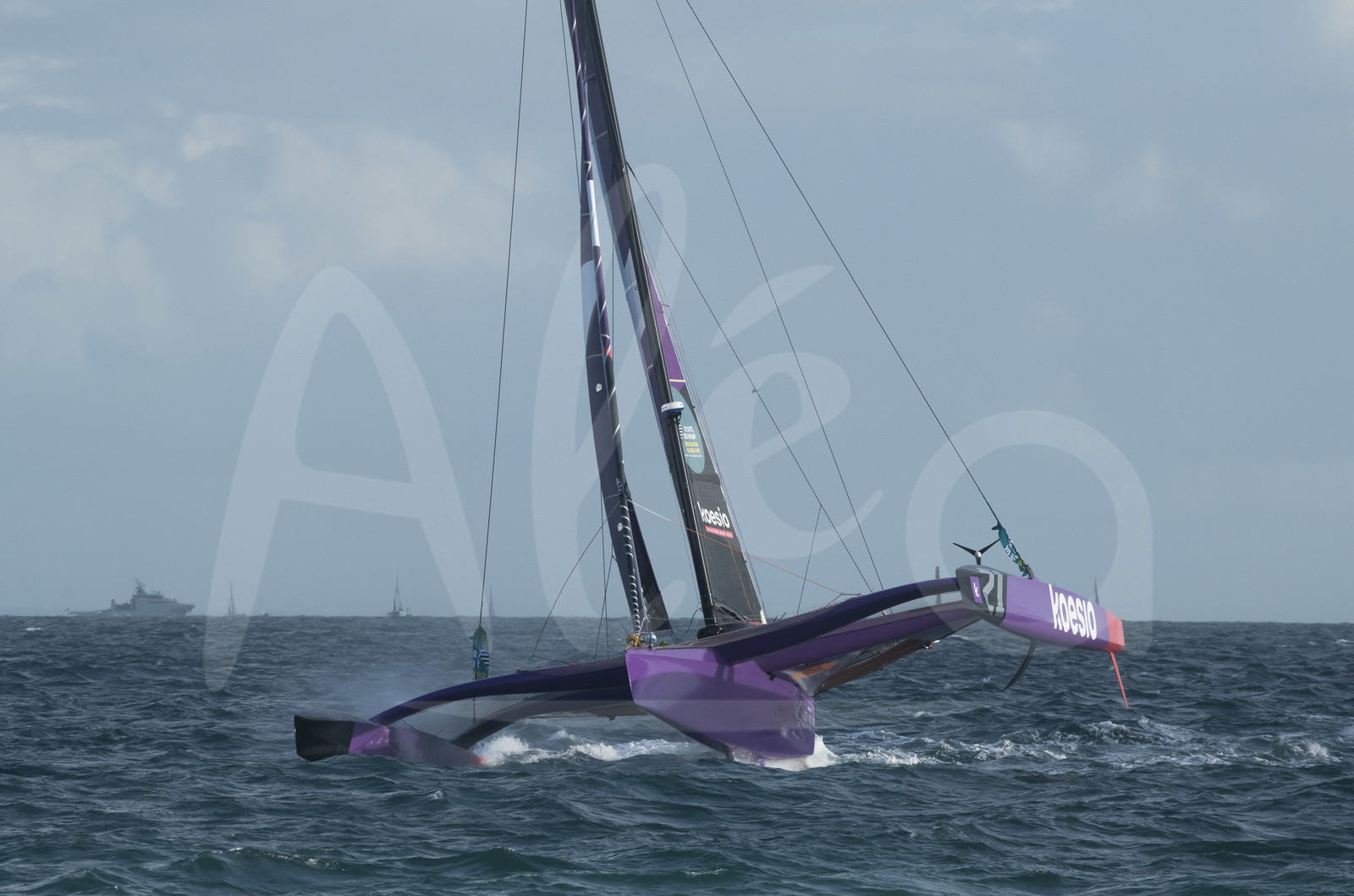 | Description | SAINT-MALO, FRANCE - NOVEMBRE 9 : Ocean Fifty Koesio, skipper Erwan Le Roux, is illustrated during start of La Route du Rhum - Destination Guadeloupe 2022 on November 9, 2022, in Saint-Malo, France. (photo Vincent Curutchet / AleA) |