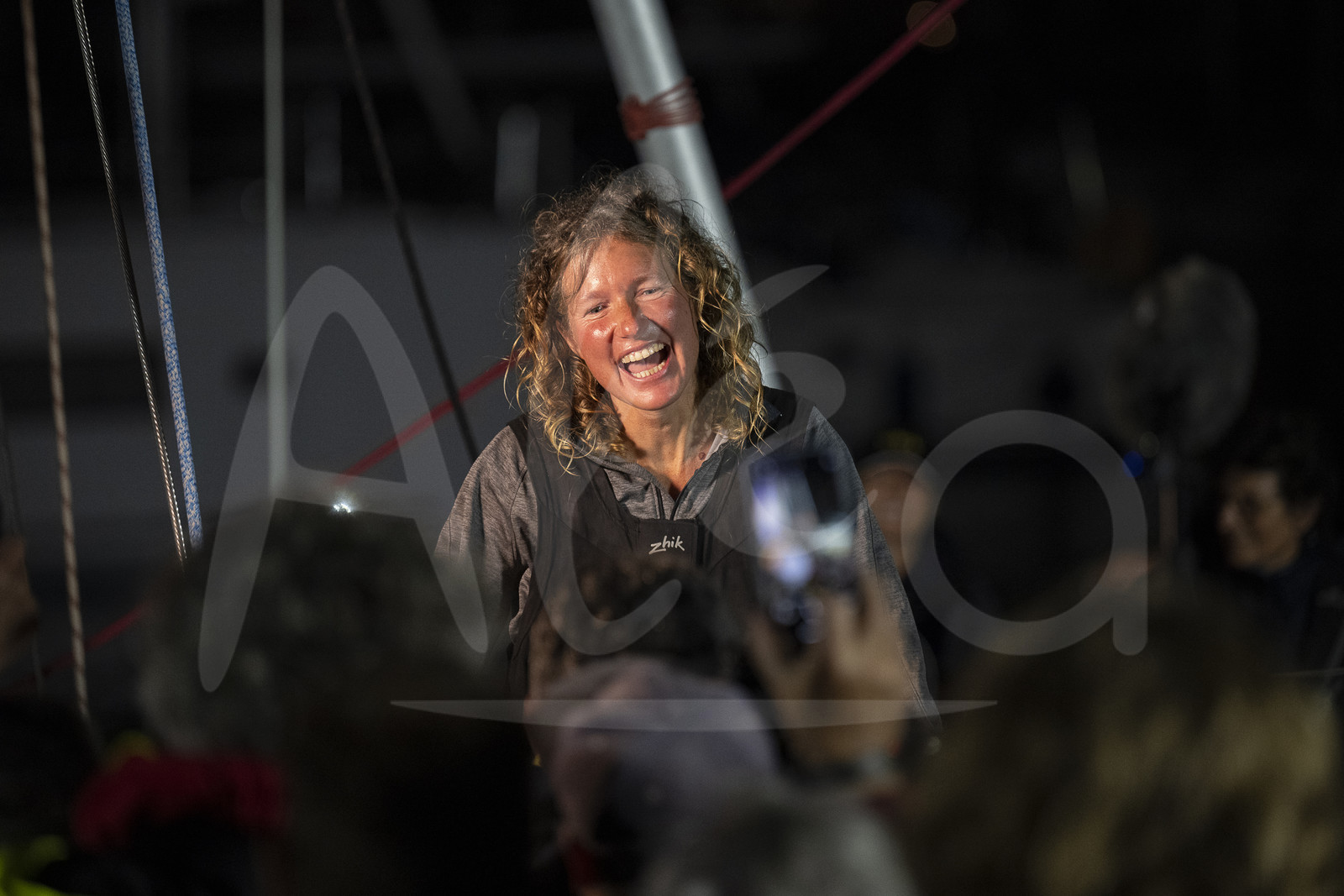 | Description | LES SABLES D’OLONNE, FRANCE - APRIL 27: South African skipper Kirsten Neuschäfer wins the round the world solo sailing race without any assistance, or electronics, on April 27, 2023 in Les Sables d’Olonne, France. (Photo by Olivier Blanchet/ALeA) |