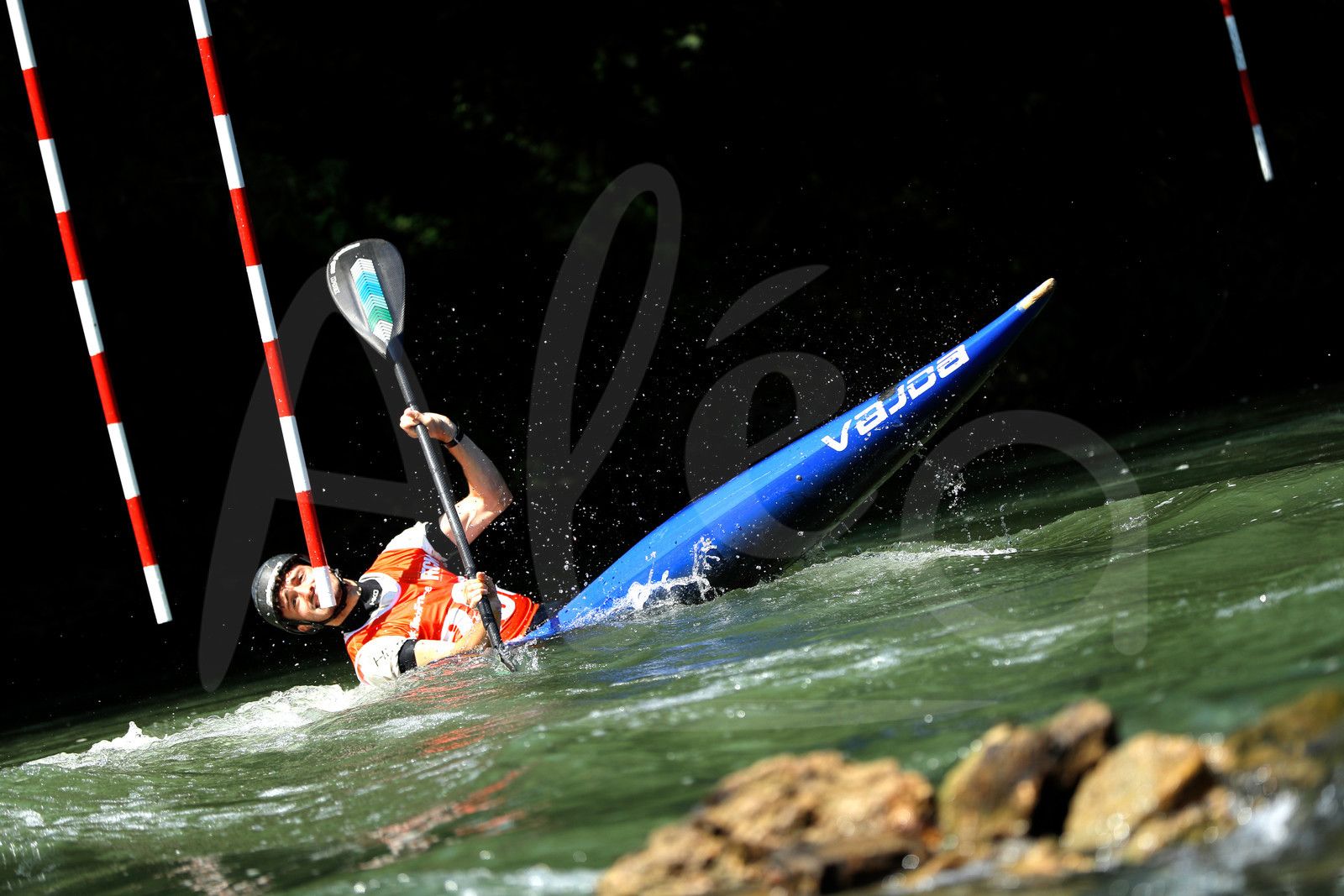| Description | CHAMPS SUR MARNE, FRANCE - Juin 25, 2023 : Timeo Capri Pericard du CK Club de Mehun, est photographié en action lors du championnat régional de canoë-kayak de Champs Sur Marne, le 25 juin 2023. (photo by Stéphane Allaman / Alea) |