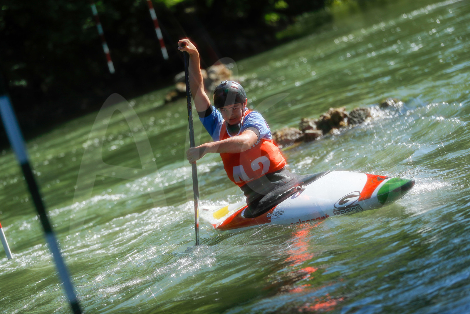 | Description | CHAMPS SUR MARNE, FRANCE - Juin 25, 2023 : Loig Le Guennec du Torcy CK, est photographié en action lors du championnat régional de canoë-kayak de Champs Sur Marne, le 25 juin 2023. (photo by Stéphane Allaman / Alea) |