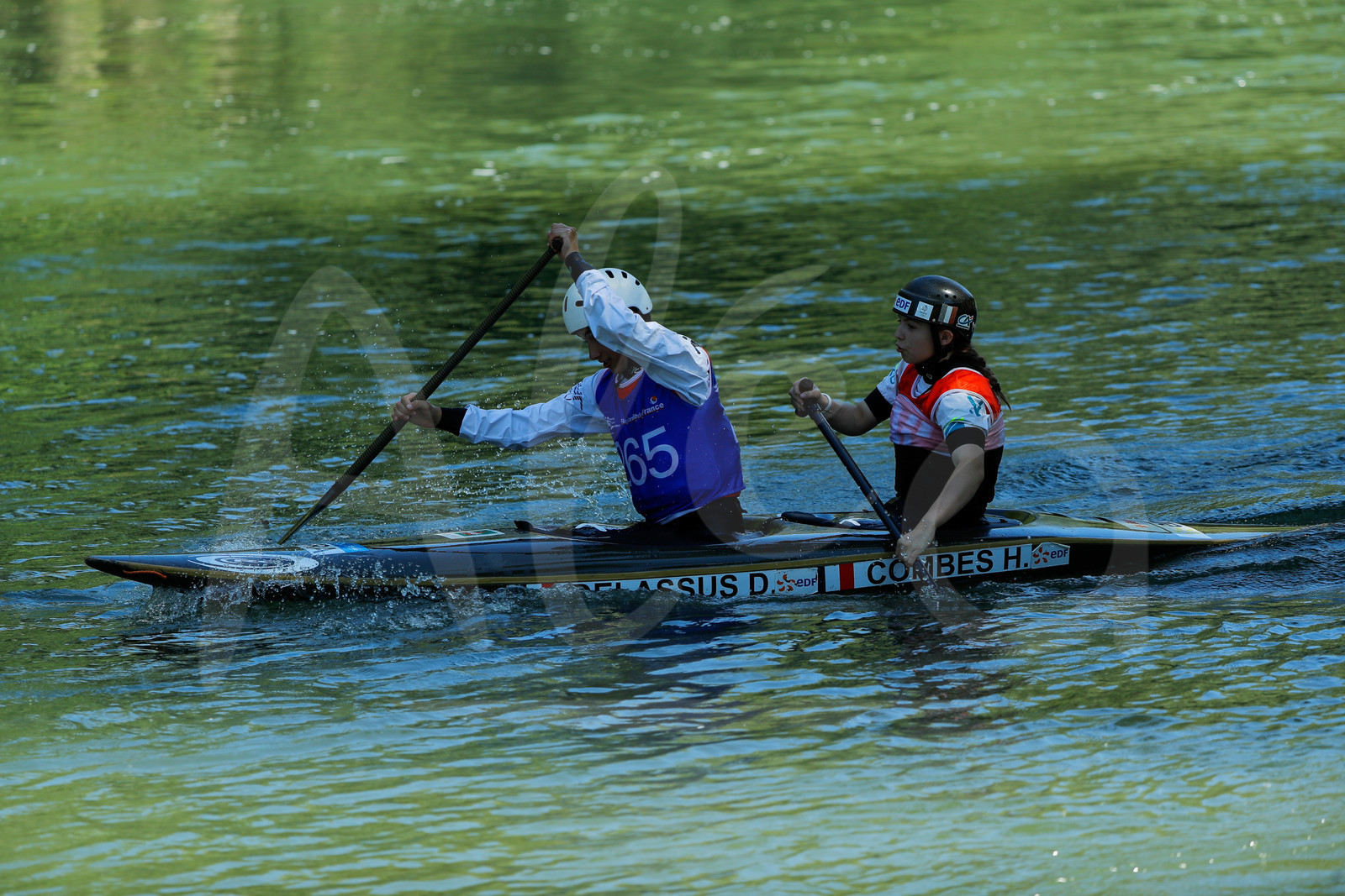 | Description | CHAMPS SUR MARNE, FRANCE - Juin 25, 2023 : Jo Rivrin Delfosse et Irene Combes du CK Club France, est photographié en action lors du championnat régional de canoë-kayak de Champs Sur Marne, le 25 juin 2023. (photo by Stéphane Allaman / Alea) |