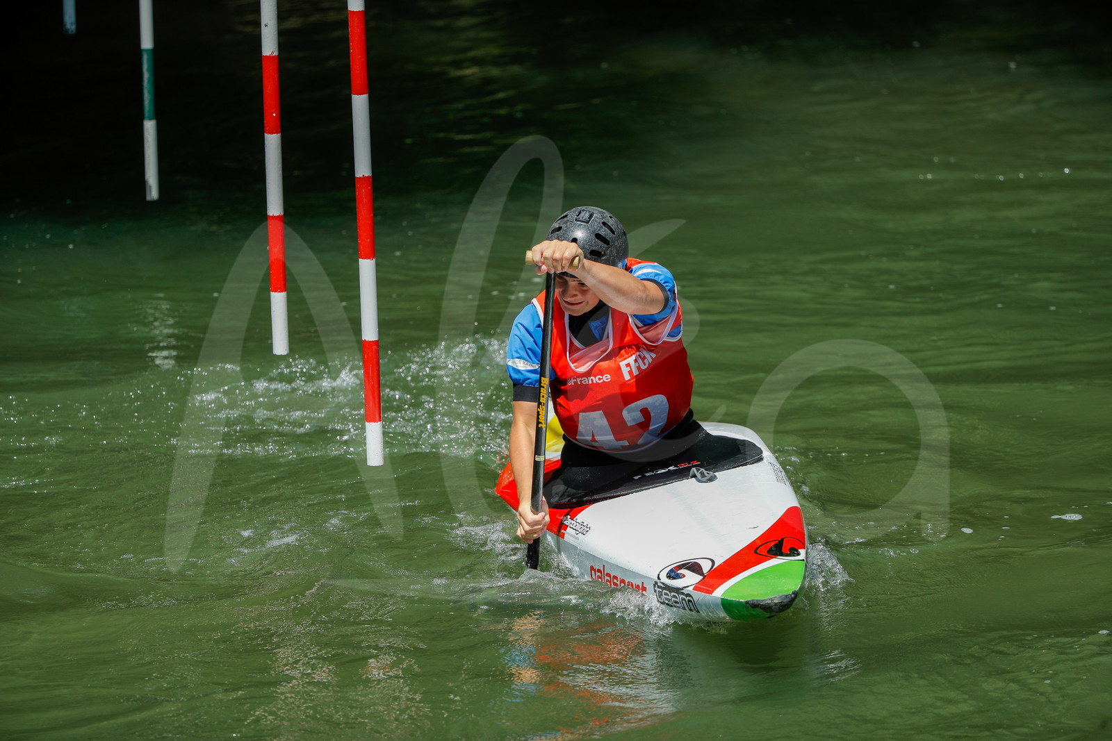 | Description | CHAMPS SUR MARNE, FRANCE - Juin 25, 2023 : Loig Le Guennec du Torcy CK, est photographié en action lors du championnat régional de canoë-kayak de Champs Sur Marne, le 25 juin 2023. (photo by Stéphane Allaman / Alea) |