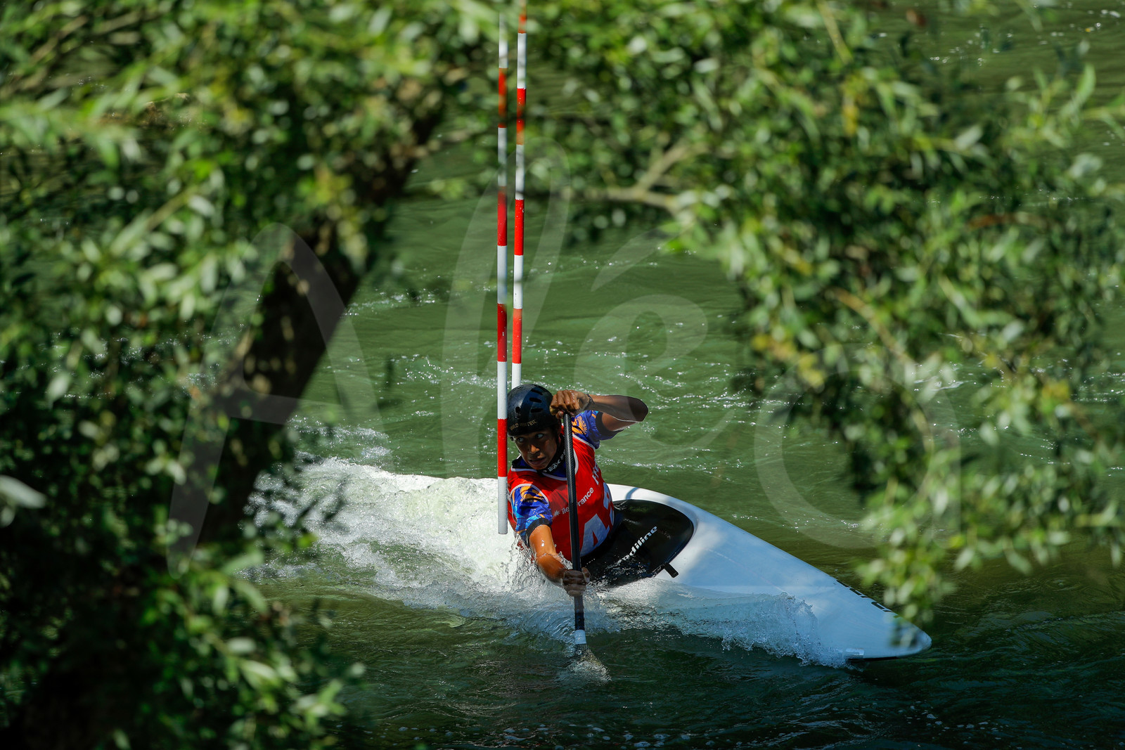 | Description | CHAMPS SUR MARNE, FRANCE - Juin 25, 2023 : Noa Nikiema Schwarz du Bac CK Sevres Issy, est photographié en action lors du championnat régional de canoë-kayak de Champs Sur Marne, le 25 juin 2023. (photo by Stéphane Allaman / Alea) |