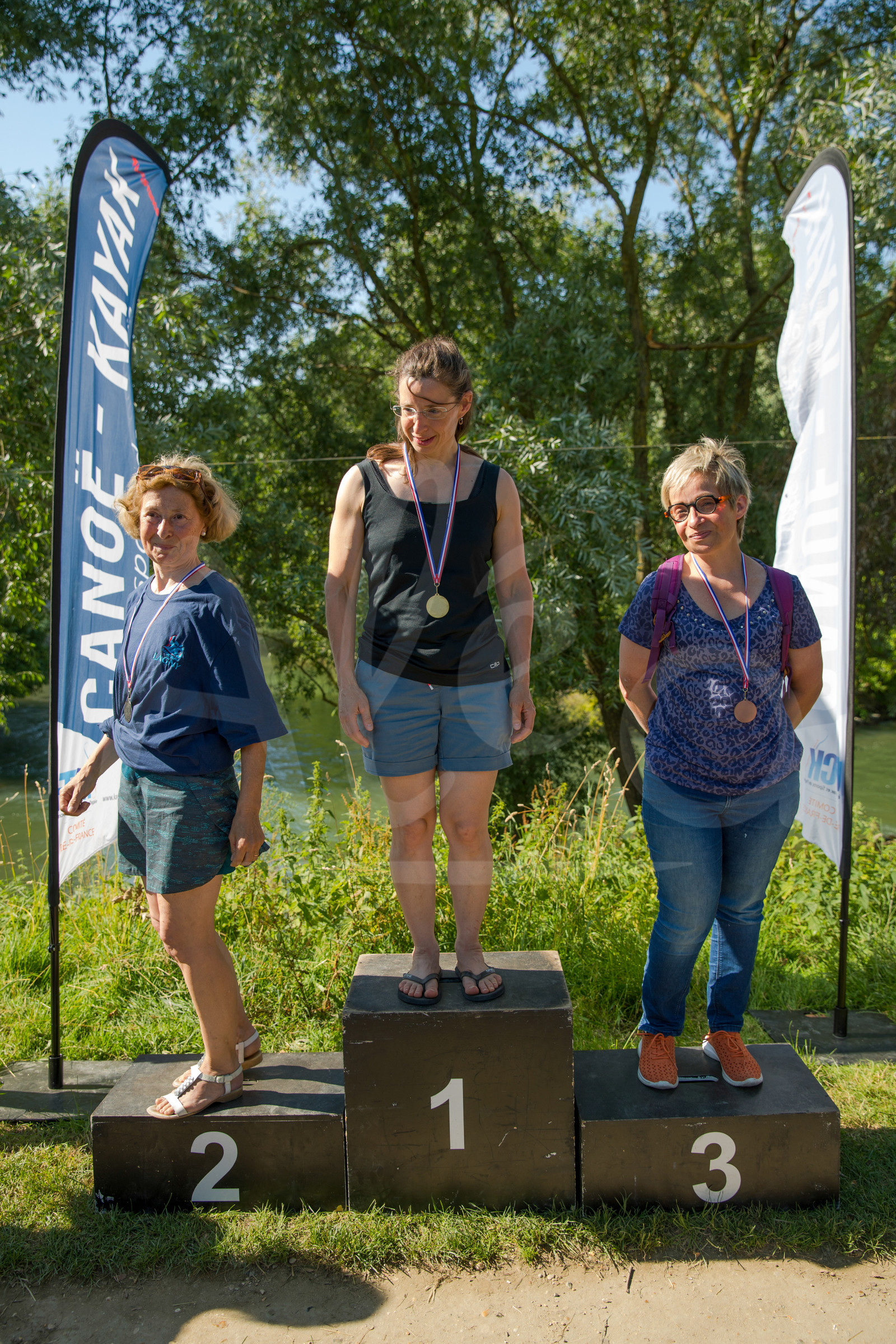 DescriptionCHAMPS SUR MARNE, FRANCE - Juin 25, 2023 : Les podiums sont photographiés lors du championnat régional de canoë-kayak de Champs Sur Marne, le 25 juin 2023. (photo by Stéphane Allaman / Alea)