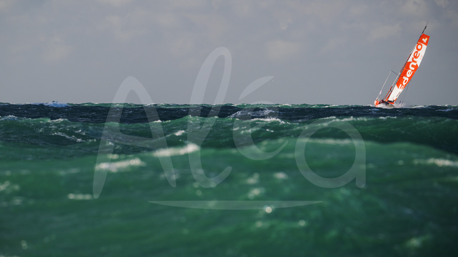 | Description | LE HAVRE, FRANCE - OCTOBER 29 : Class 40 Edenred, skippers Emmanuel Le Roch and Basile Bourgnon, is taking the start of the Transat Jacques Vabre in Le Havre, France, on October 29, 2023. (photo by Jean-Louis Carli / Alea) |