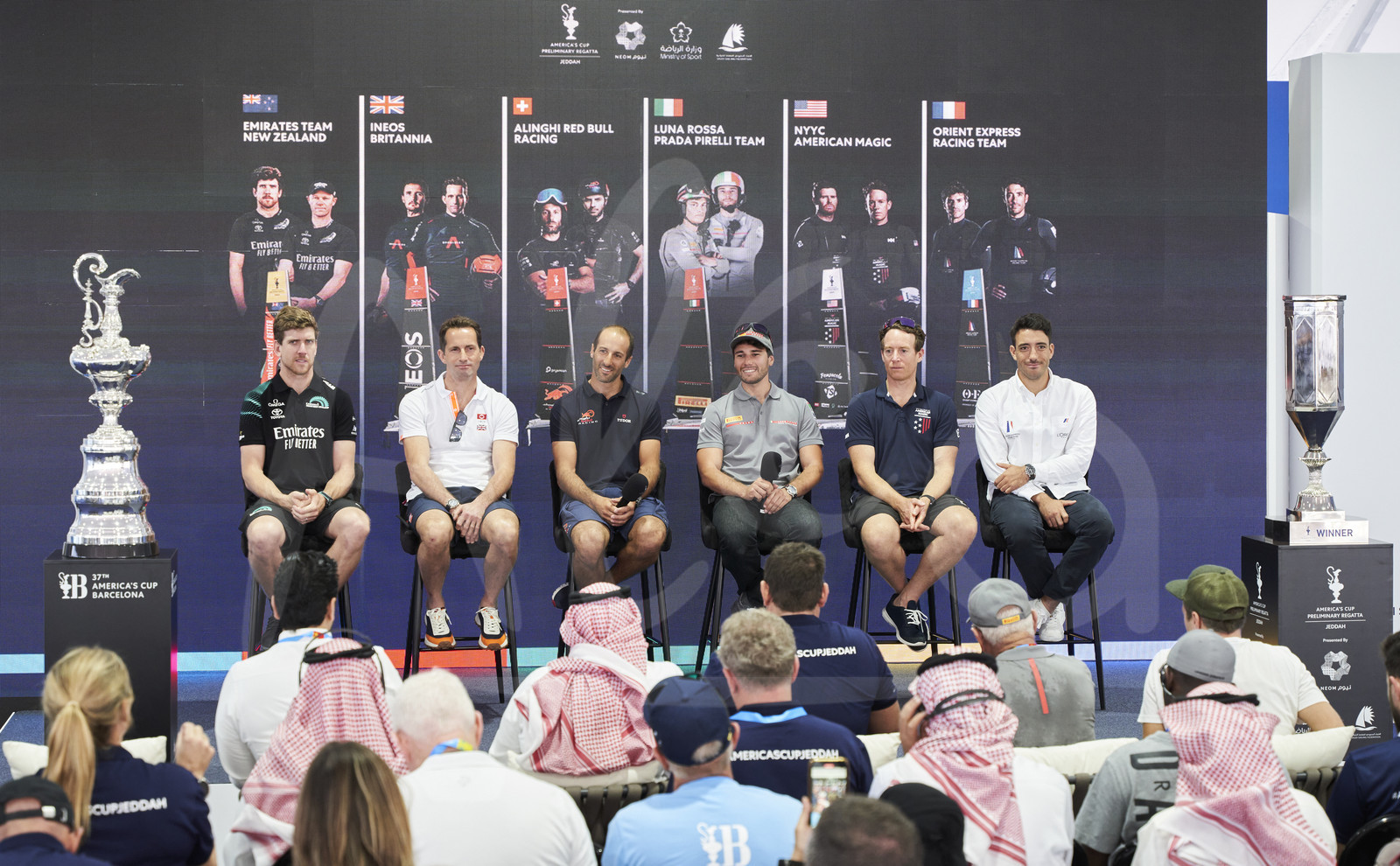 | Description | JEDDAH, SAUDI ARABIA - NOVEMBER 29: AC 40 skippers are presented during the Preliminary Regatta held before the Louis Vuitton Cup, in Jeddah, Saudi Arabia, on November 29th, 2023. (photo by Luca Butto / Studio Borlenghi / Alea) |